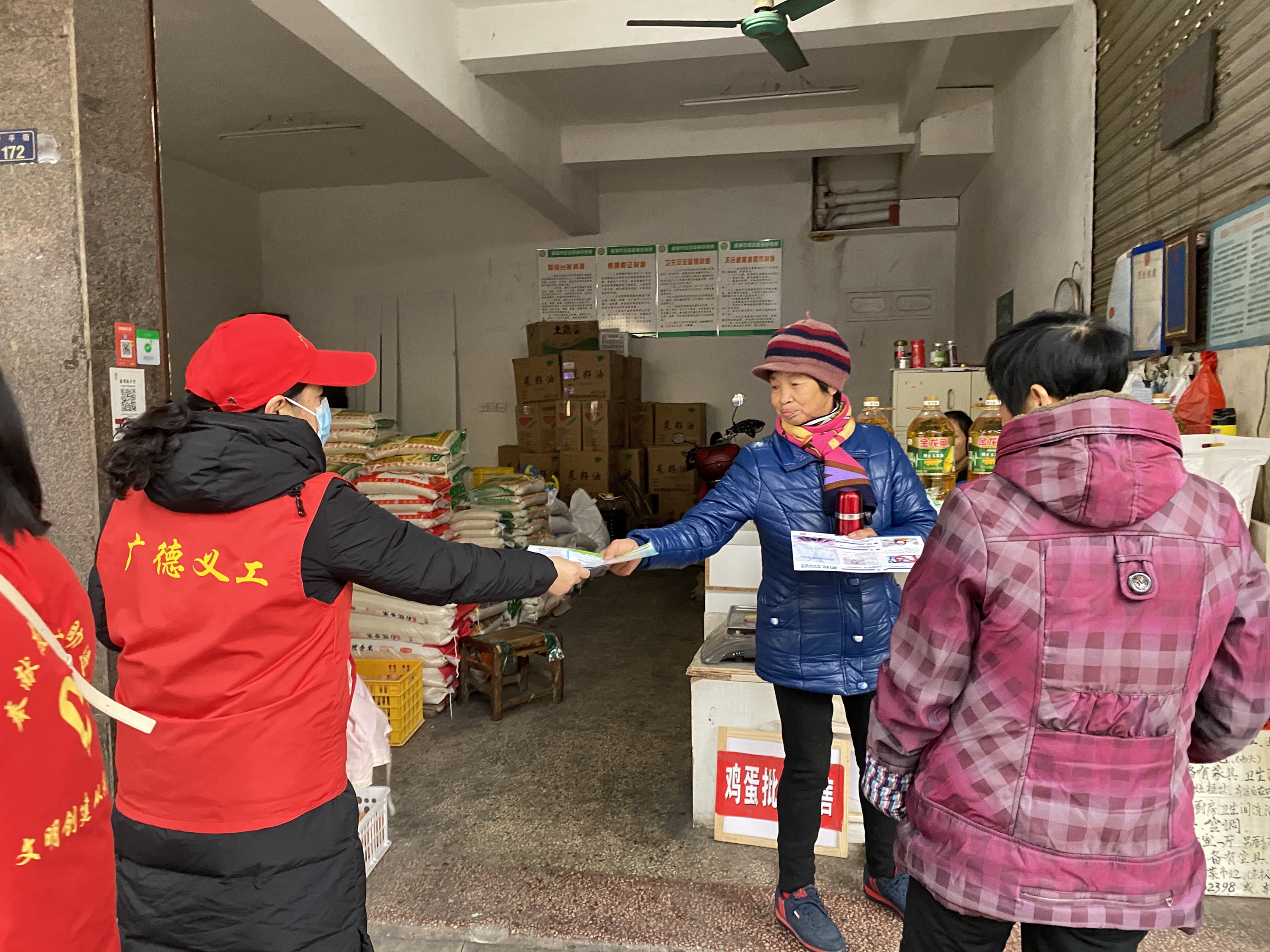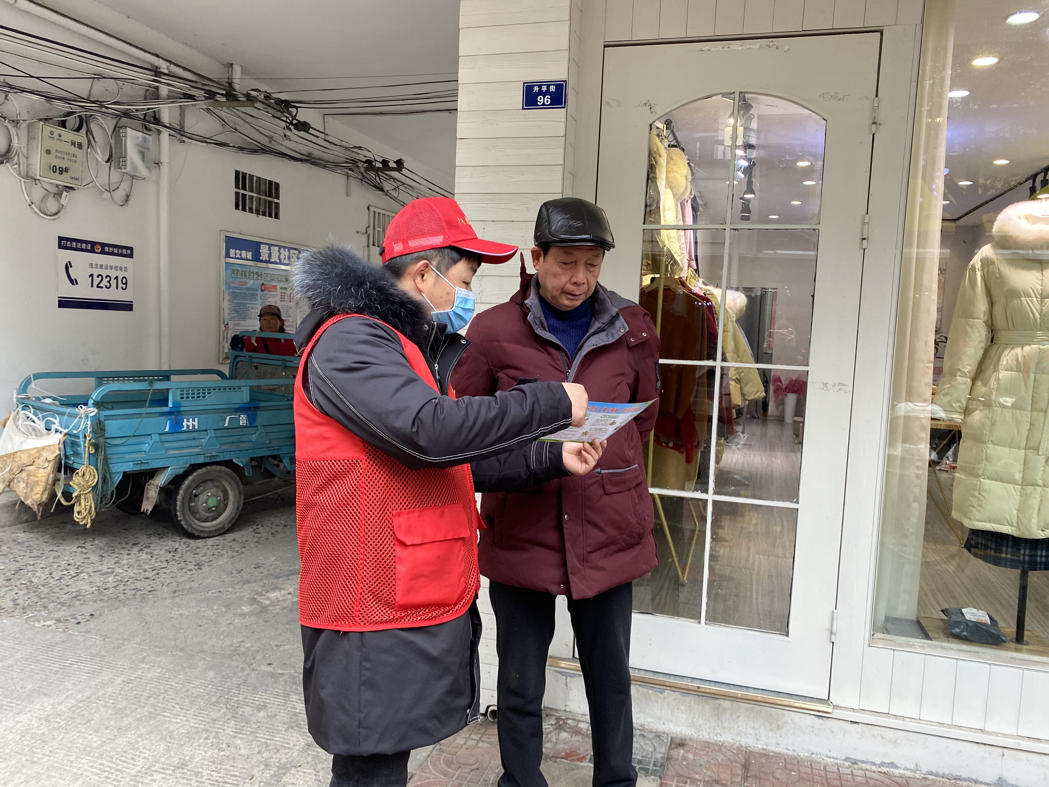 们在街道向居民群众及沿街门店发放健康宣传手册,科普健康卫生知识。他们向群众进行健康知识讲解,告诉