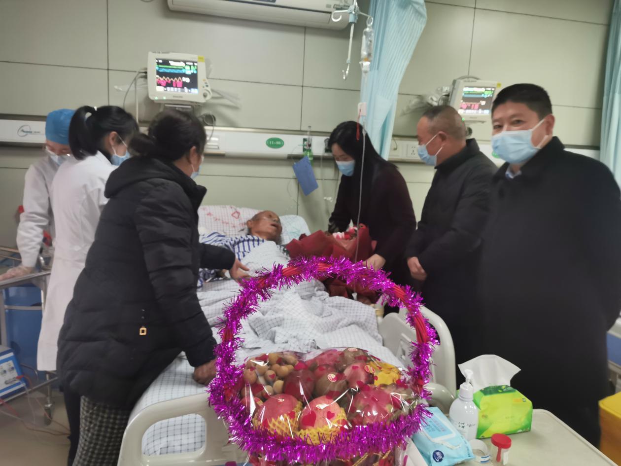 近日,外联办主任姚琳斌、创建办主任刘娟带着鲜花和果篮来到抗战老兵孙心义病床前,代表医院慰问老人。