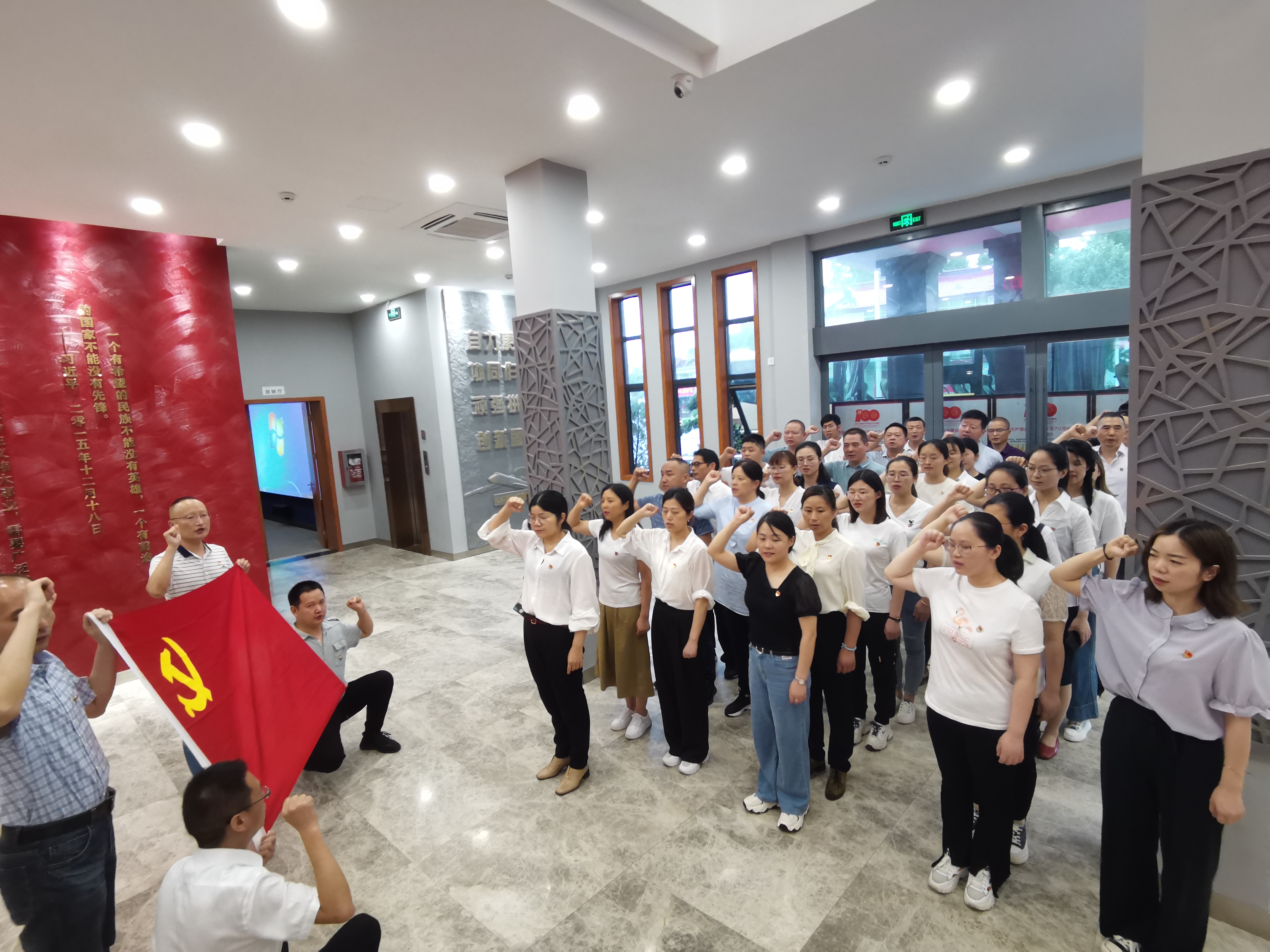讲解结束后,全体党员面向党旗,重温入党誓词。
