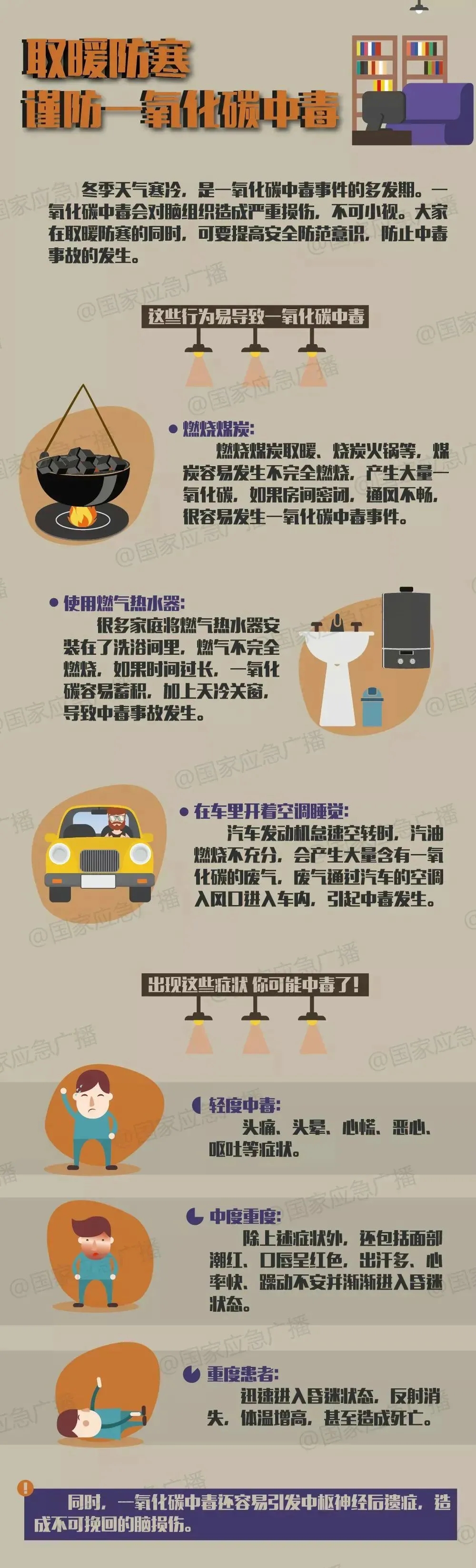 在此我们再次呼吁:冬季取暖一定要加强安全防范意识,尽量避免在室内长时间用炭火取暖,更应杜绝夜间临睡前将炭火放置室内。用炭火取暖时多走动到户外呼吸新鲜空气和保持室内通风是防范一氧化碳中毒的有效方法,希望大家在取暖的时候不让一氧化碳这个隐形杀手有机可乘。