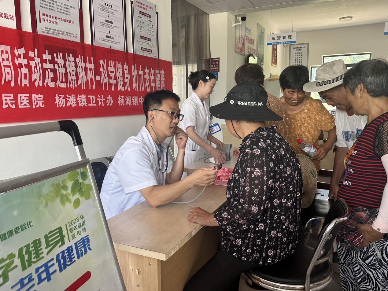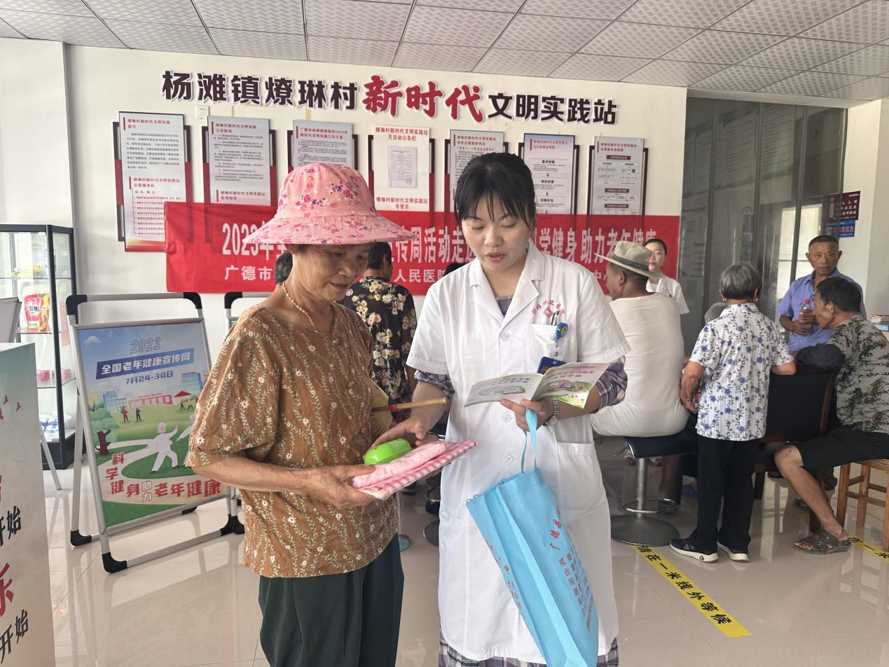 7月27日,我院与广德市疾控中心、杨滩镇卫计办、杨滩镇卫生院一起,联合开展了“2023年老年健康宣传周走进杨滩燎琳村活动”。