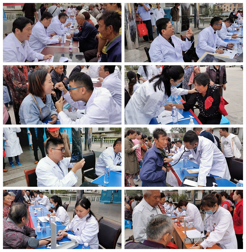 义诊现场,专家们为前来咨询的群众检查身体,询问他们的身体状况,耐心的分析病情,认真解答患者提出的疑惑,并给出合理的诊疗建议。志愿者们发放健康知识宣传单,向群众普及健康知识,为群众测量血压、血糖,并发放创口贴、风油精等家庭常备药品。