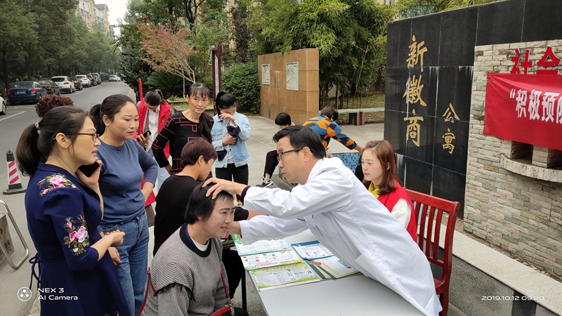 李主任指导社区居民在对待疑是老年痴呆症时症状患者要悉心观察、尽早发现症状,如:记忆力减退、计算能力减退、思维能力下降、性格情绪改变等,特别是忘记熟人的名字,不记得刚刚发生的事情,不断重复同一句话、同一件事等,有这些症状应该马上就医,尽量做到“早诊断、早干预、早受益”,并讲解了预防注意事项。现场还为一名阿尔茨海默病患者检查,为患者家属答疑解惑。