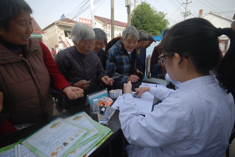 到高湖白桥村进行“让我们远离卒中,从健康生活开始”专题义诊活动,宣传脑卒中相关健康知识,为群众提供免费问诊咨询。