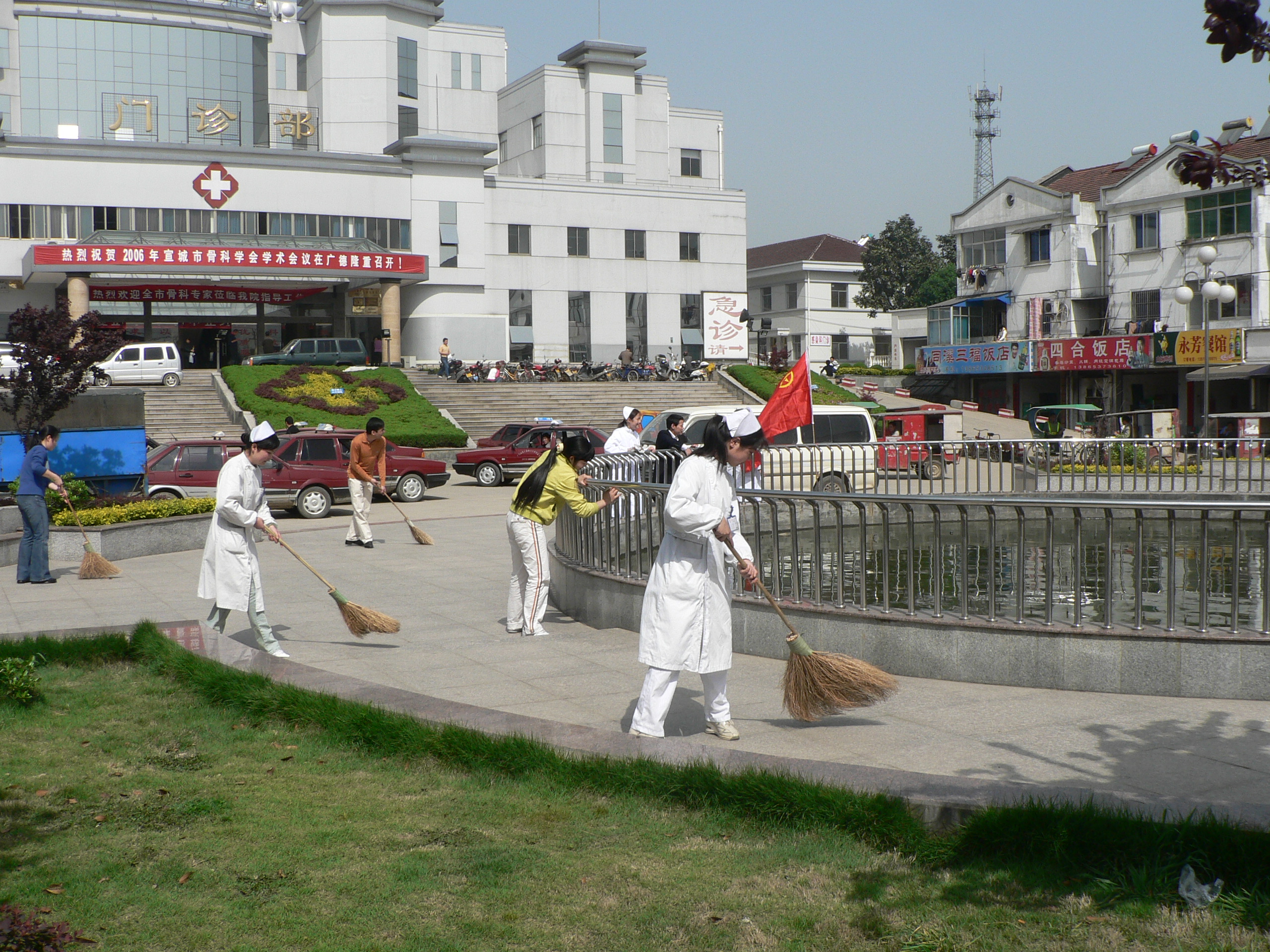 4月29日为了迎接“五一”劳动节的到来,同时响应院方提出的“在我院深入开展‘八 荣八耻’活动”的号召。院团委组织全院团员参加了清理清洁门诊广场活动,在院团委书记胡婷和一支部书记许启艳的带领下,全院团员齐心合力,将门诊广场清理的焕然一新。院总支书记张先明代表院总支对此次团委活动予以表扬。他提出:“院团委此次活动的开展是深刻理解了胡总书记提出的‘以服务人民为荣、以辛勤劳动为荣’的理论,为我院深入开展学习“八荣八耻”活动做了很好的表率,希望全院职工要学习发扬院团委的这种把理论学习贯穿到实践中来的精神,真正做到学以致用,服务于人民群众。”