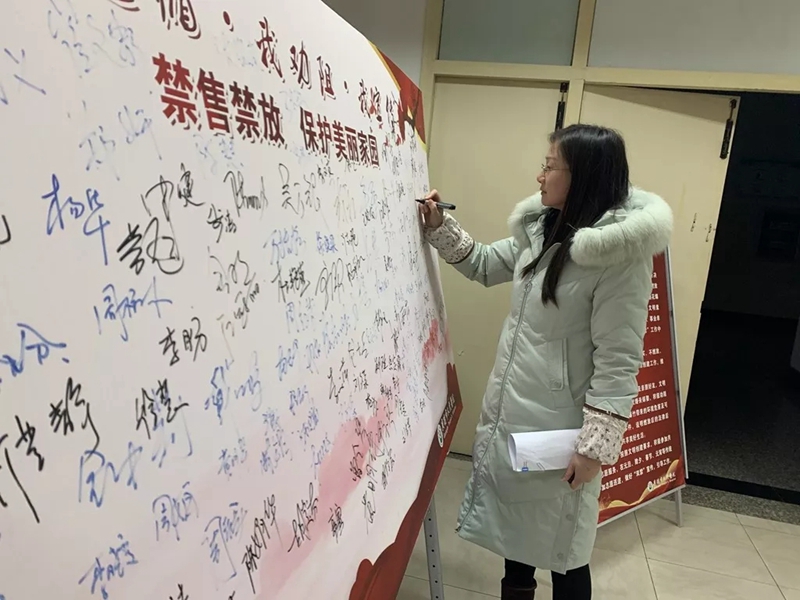 大家纷纷承诺“我遵循,我劝阻,我宣传,禁售禁放,保护美丽家园”,做带头模范,做文明使者,做创建骨干,以实际行动做好“双禁”宣传,全力支持文明创建工作,维护好广德良好生态环境。