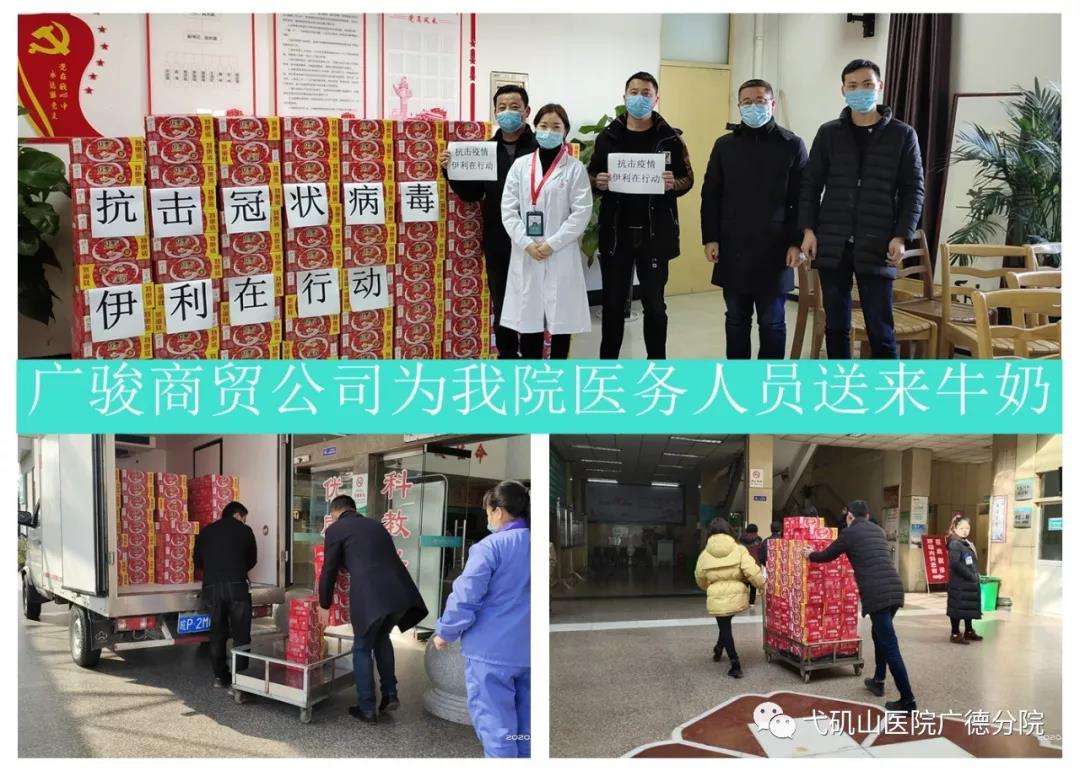 他们前脚刚走,广骏商贸公司的人员也为医院医务人员送来了450箱牛奶,“你们辛苦了,一定要保重身体,你们是我们的保障!”