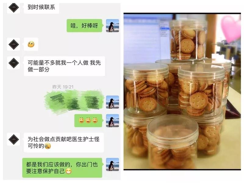还是正月初六这天,两张图片在我院内科护士的朋友圈里被转载,一位广德的女孩为感谢医护人员们的辛劳工作,为人民健康坚守阵地的不易,亲手做了些小饼干,送到我院内科护士站,表达她对医务人员的感激。