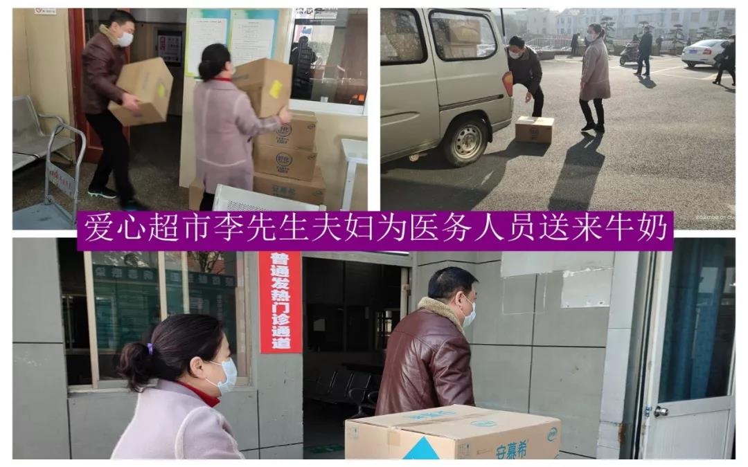 正月初八一早,桃州路上的爱心超市李先生夫妻两人开着货车来到医院门诊,“我们想送一些牛奶给医务人员,为了广德人民的健康,你们辛苦了”!夫妻两人自己用拖车将牛奶放置到医院门诊,并一再对工作人员说:“缺什么,尽管说,只要我们能找到的,我们不要钱,一定会立刻给你们送来”!
