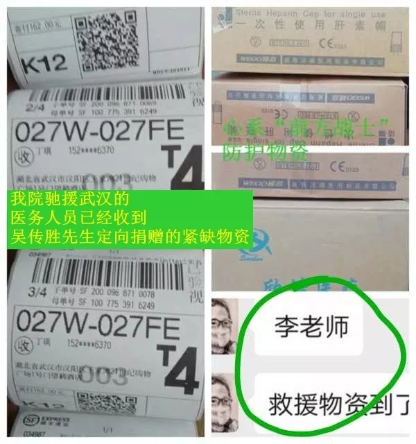我们请您放心,您叮嘱我们要寄到武汉前线的的爱心物资,我们已经在第一时间根据需求全部寄出,并已经平安送达!