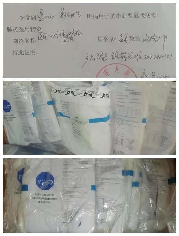 经过他多方筹措,想方设法,在防护物资紧张的情况下,分批次送来3000只医用外科口罩、117件防护服、14件隔离衣。