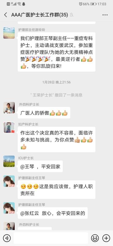 一方有难,八方支援,1月28日晚,接到我省组建支援湖北第二批次医疗队的通知,要求我院抓紧上报一名重症护士加入。我院护理部副主任王琴立即和家里人商量后就向院领导主动申请前往支援武汉。