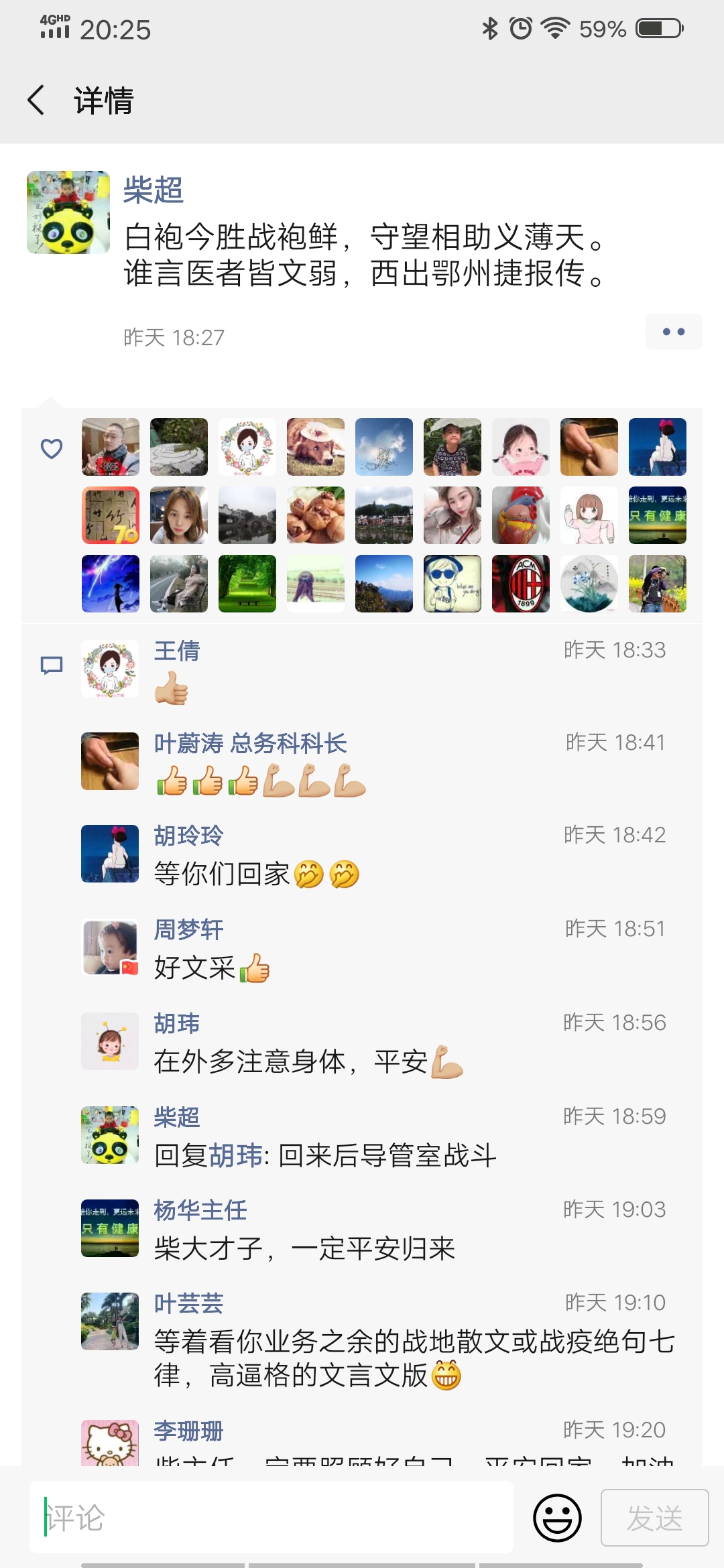 临行时,我们送别这位在工作岗位上共同奋战了十几年的战友出征,是我们最难舍的事情,虽然忧心,但是我们更有信心!为了千家万户的安康,舍小家,为大家,无畏出征,扶危渡厄——向最美逆行者致敬!向默默支持他们的家人致敬!祝福英雄们早日平安凯旋归来!
