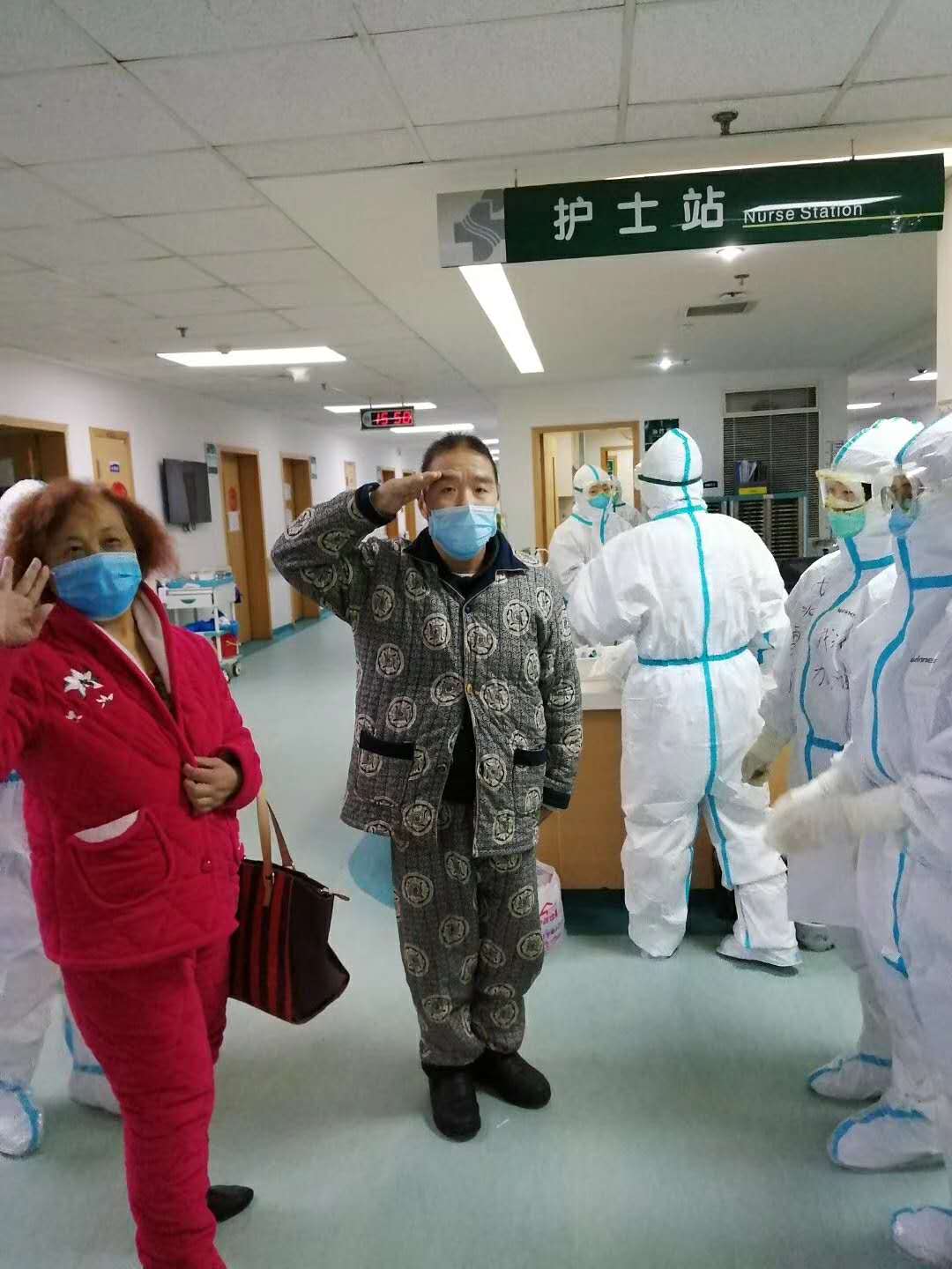 2月26日,我们正式进入武汉市中心医院,接管两个病区80张床位,集中收治新冠肺炎的病人了。进入病区前,大家迅速而熟练地穿上了防护装备,而我心里默念着流程:洗手衣、口罩、帽子、隔离衣、口罩、鞋套、手套、防护服、靴套、手套、护目镜、面屏,还有我给儿子穿过无数次的纸尿裤。我们穿着“太空服”进入隔离病区,与留守的本院老师详细的交接着,老师告诉我们,这个病区有很多“爹爹,奶奶”。我和几个同事都茫然的望着他,他仿佛是看出了我们的异样,笑着跟我们用普通话重复了一遍,原来“爹爹”是爷爷的意思。还记得我给一位大叔皮下注射时,当得知我来自安徽,就连声夸赞安徽,赞美我们的黄山,并感谢我们千里迢迢来到武汉帮助他们,我笑着回答说:不用谢叔叔,因为我们是一家人。