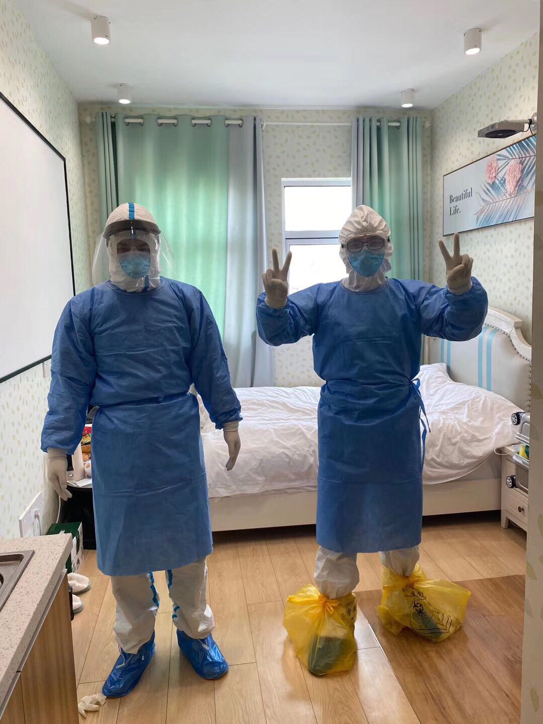在十个小时的工作时间内,为了安全也为了节省防护设备,我们尽量做到不吃不喝,虽然工作很累,时间很长,身体很疲惫,但是我们的内心是无比高兴的,因为在我们的治疗及护理下,一个又一个患者被治愈出院了,疫情正在向好的方向发展,胜利在望了。