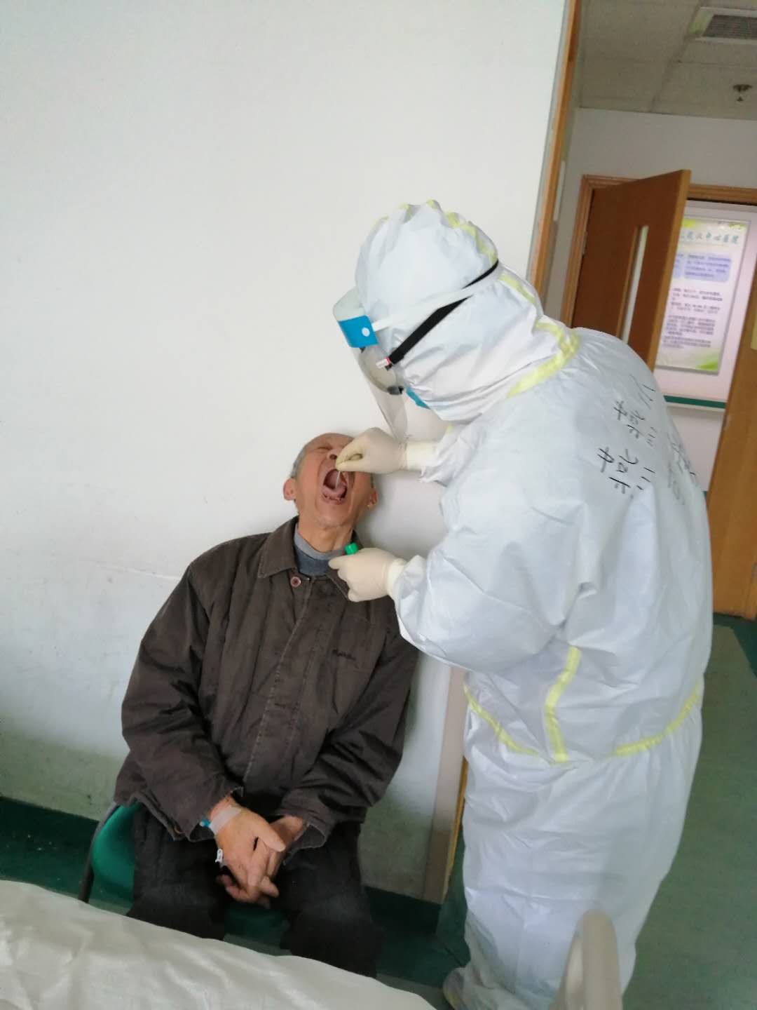 开始进舱工作后,第一天上班时,压缩饼干是我的主食,笨重的防护服和口罩压的我喘不过气,到后来全身汗湿后又开始冷,在这里的每一个动作都必须小心翼翼,好不容易等来下班 ,但谁想这又是新一轮的煎熬的开始,因为脱防护服必须排队进行,一排又是一个多小时,就第一天的班来说真的好累。但是很快便度过了磨合期的我,现在就不一样了,什么抽血、咽拭子采集、心电图已经阻止不了我了。