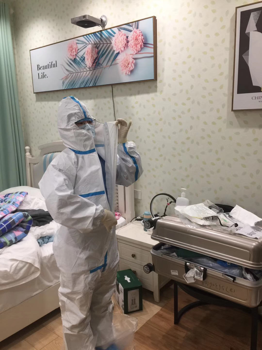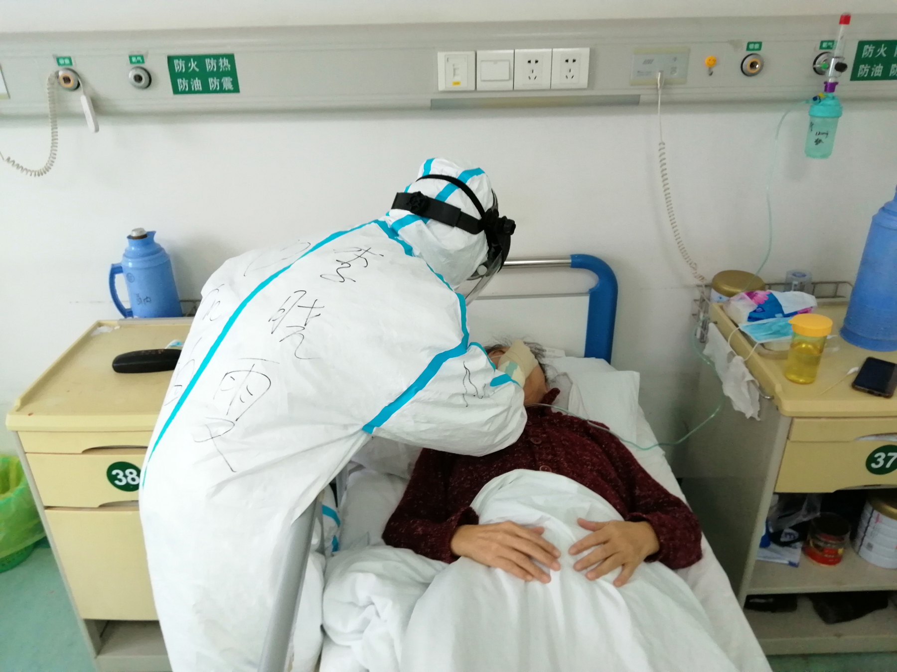 我们所承担的病区工作任务还是挺艰巨的,大部分都是生活不能自理的老人,我们不仅要打针、发药、采集咽拭子、测体温、血压和血氧饱和度等工作,还要负责病房的消毒、处理排泄物和照顾他们的日常生活中一系列问题。这要是平时,可能并不觉得有多累,但在一层层装备的包裹下,连喘口气都觉得困难,做起这些事情来,更是寸步难行。对于近视的我,工作一会,镜片上就起了厚厚的一层雾水,简直就是雪上加霜,贴身的衣服也几乎是干了又湿,湿了又干。