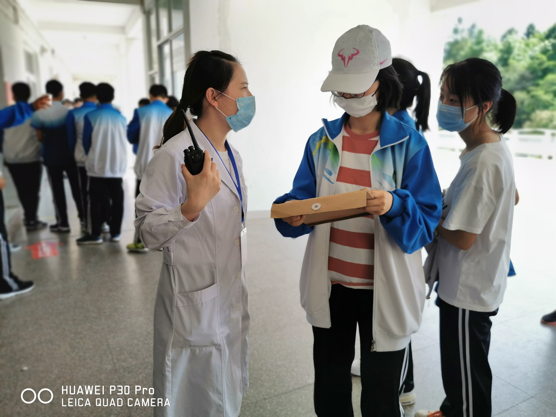 学生体检时有专人引导,按照班级顺序分批分组体检,且每组检查人数不超过15人,在侯检时有专人引导考生保持相互之间的距离,并督促考生佩戴口罩,减少风险。