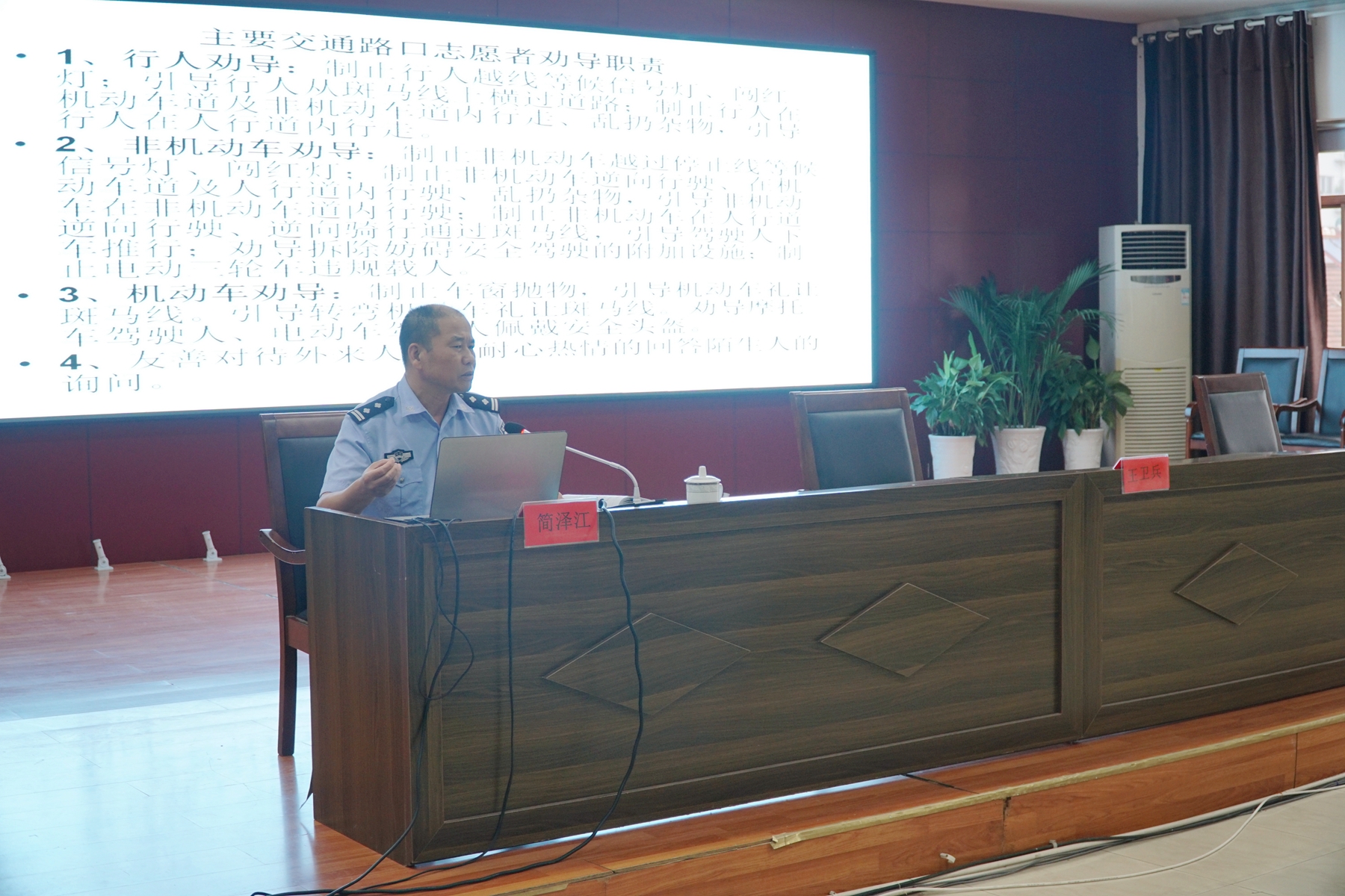 王卫兵副局长通过播放交通案例视频,以案说法,细述文明交通志愿者工作要求,进一步增强参会人员的安全意识、守法意识和防范意识。