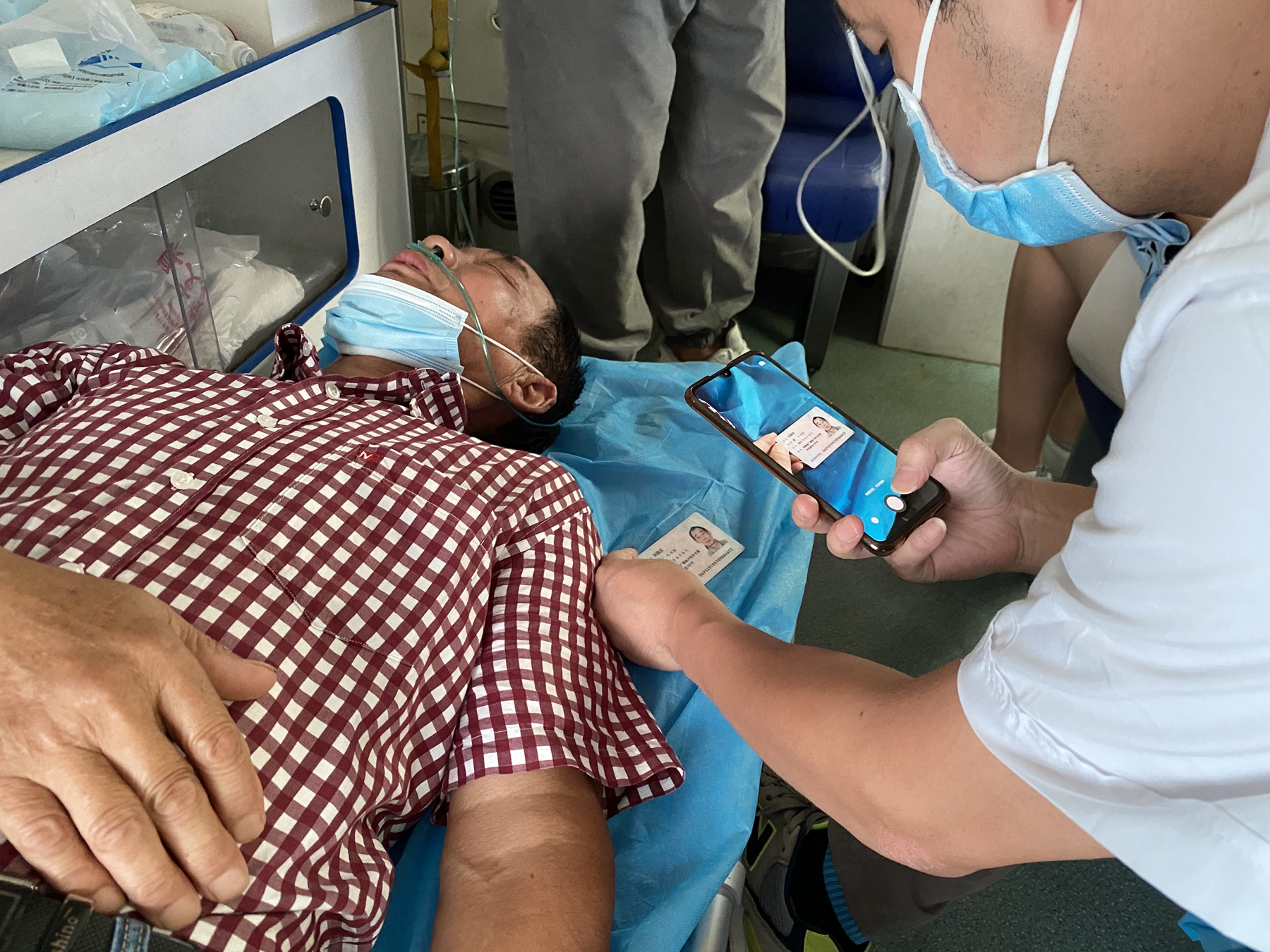 到达现场后,120医生接诊患者,通过询问病史及查体了解病情,考虑患者为急脑卒中。120护士在现场为患者留置浅静脉置管,同时启动院前急救脑卒中诊疗流程,微信传递患者身份信息至120微信群,急诊护士启动脑卒中绿色通道,提前挂号,并立即电话通知我院急诊科医生,做好各项急救准备。