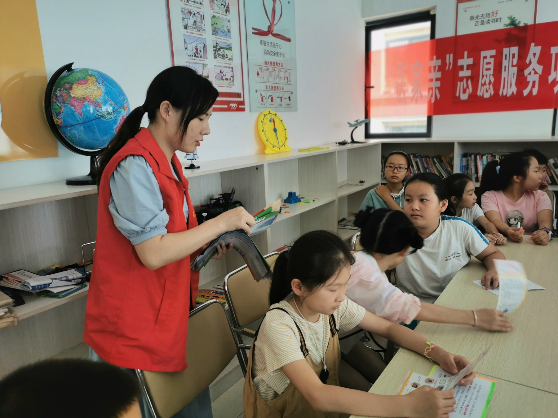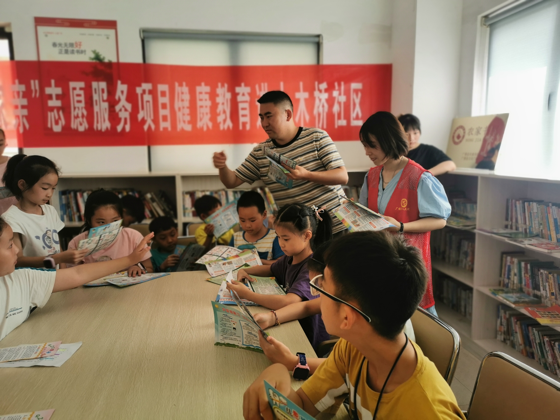 讲座结束后,志愿者们为小朋友发放了一些关于健康饮食、爱眼爱牙、防溺水的知识宣传单,并告诫小朋友们
