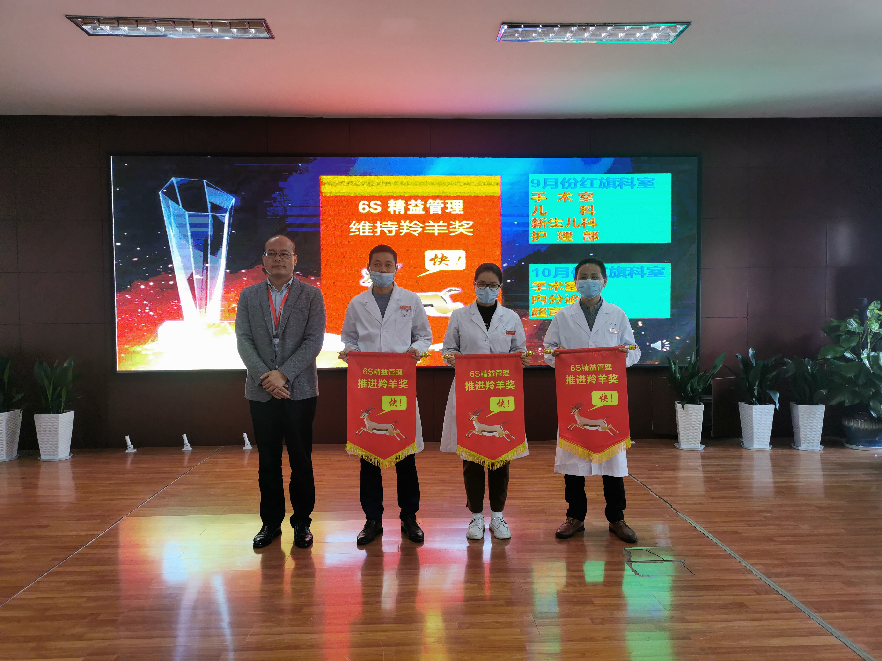 9月份6S竞赛优胜的手术室、儿科、新生儿科、护理部颁发了羚羊旗。