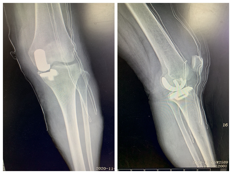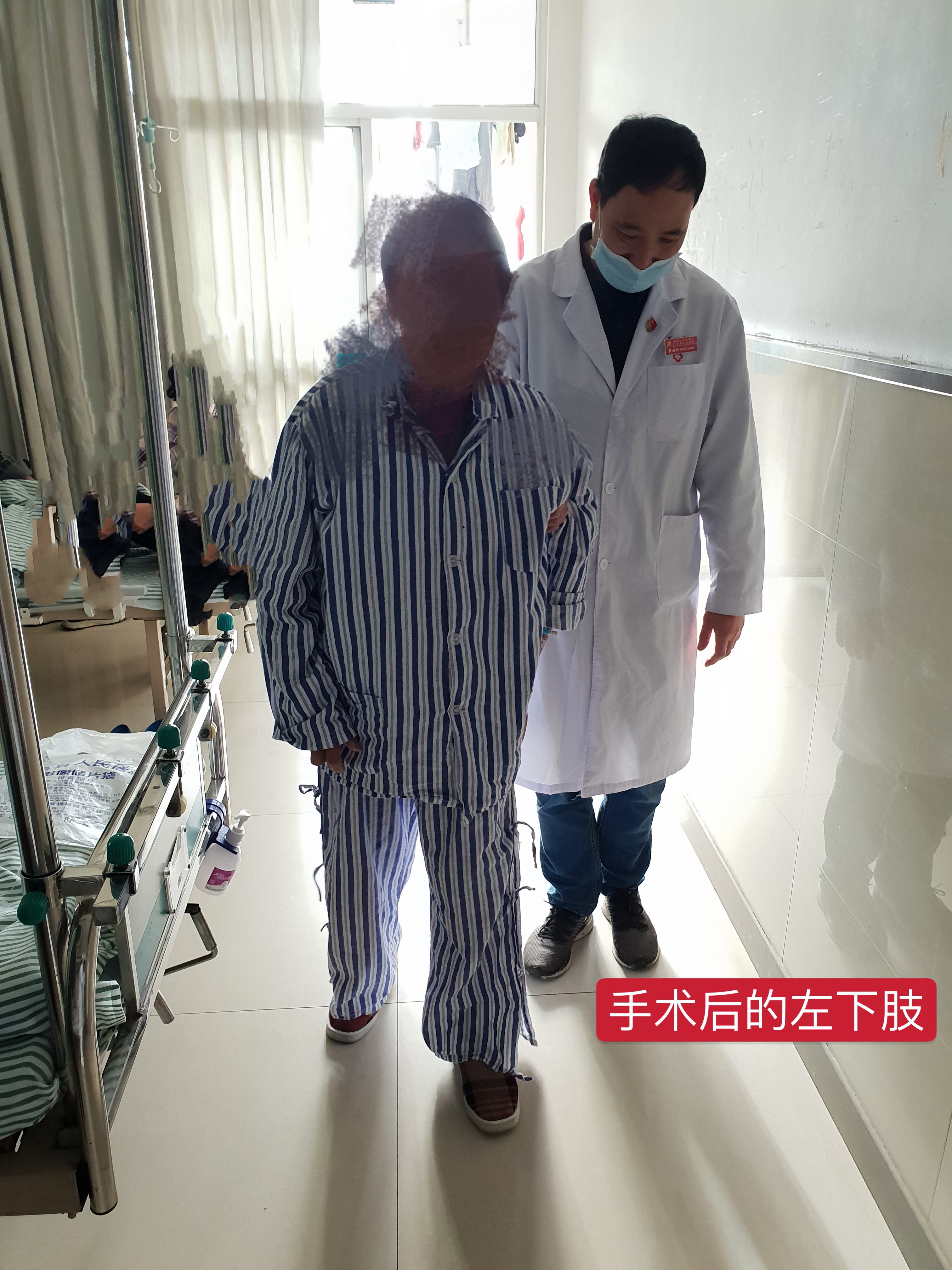 术后第三日,患者即下地站立行走,成功解决了患者左膝关节疼痛及关节功能问题。