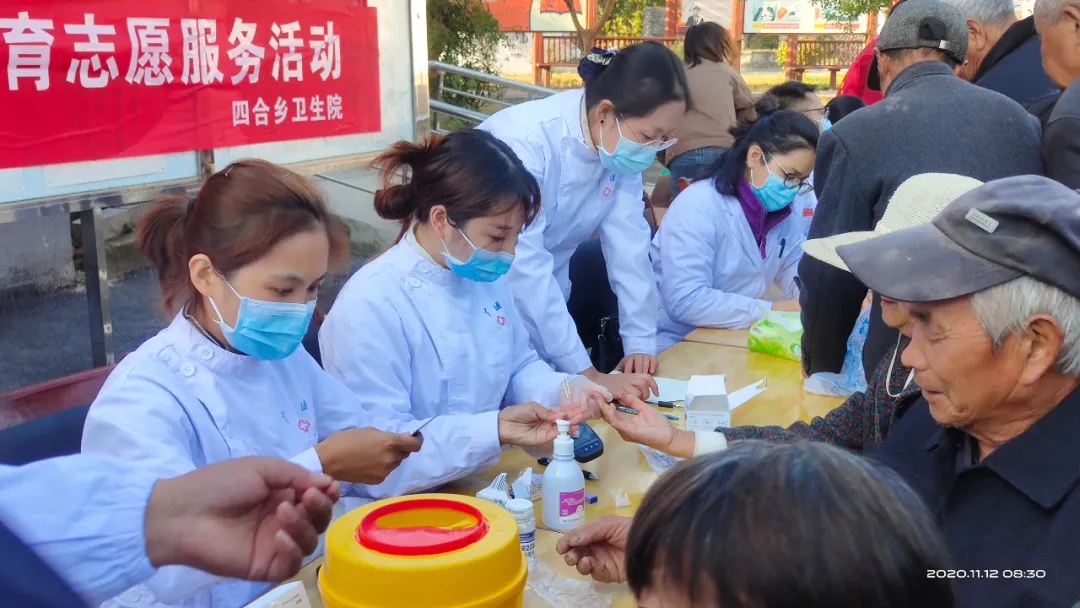 为提高广大群众对糖尿病的认识,同时为糖尿病患者和肥胖症患者做好医疗服务。11月12日,我院内分泌科医护人员来到四合乡为当地群众开展糖尿病防治义诊活动。