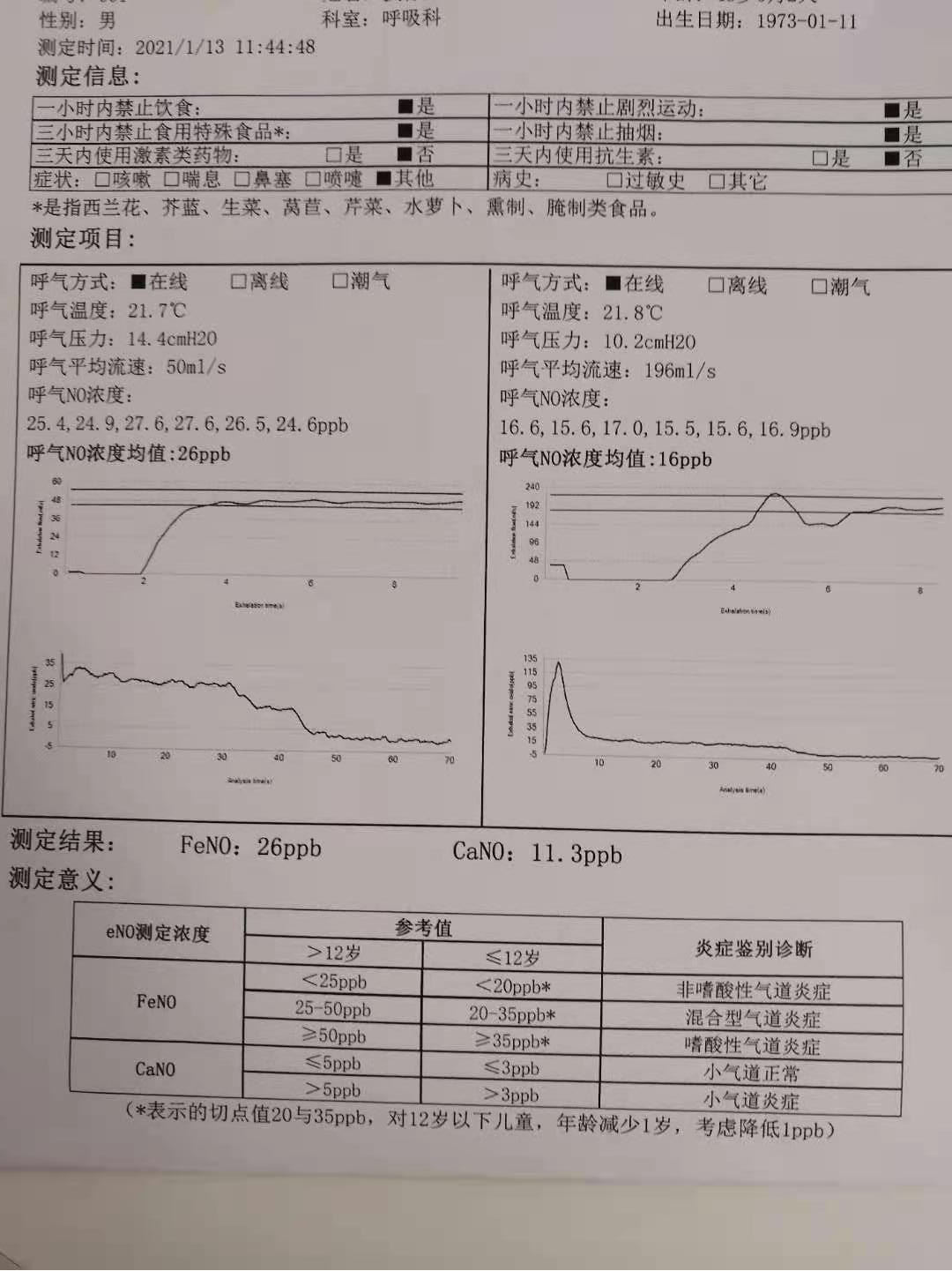 呼气一氧化氮作为一项生物标记物可反映气道的炎症及高反应性,具有很高的敏感性和特异性,且具有无创、简便、迅速、安全等优势,正常情况下两分钟就可以拿到报告。