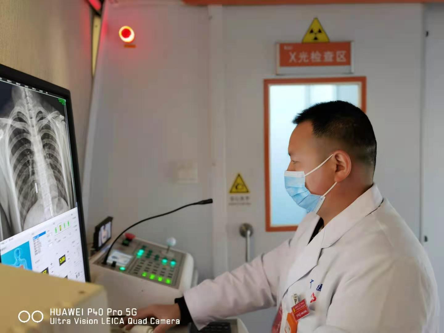 高考体检涉及DR、血压、采血、身高体重、内科、外科、视力检查、嗅觉听力检查、耳鼻喉科检查、口腔科检查等多个项目, 为确保体检各项工作顺利进行,满载医务人员的体检专用车清晨7点就进入校园。抵达校园后,影像科工作人员为学生们进行首个检查项目:胸部X线检查;防止肺部疾病的扩散,有效降低疫情防控风险,保障了体检现场的安全。