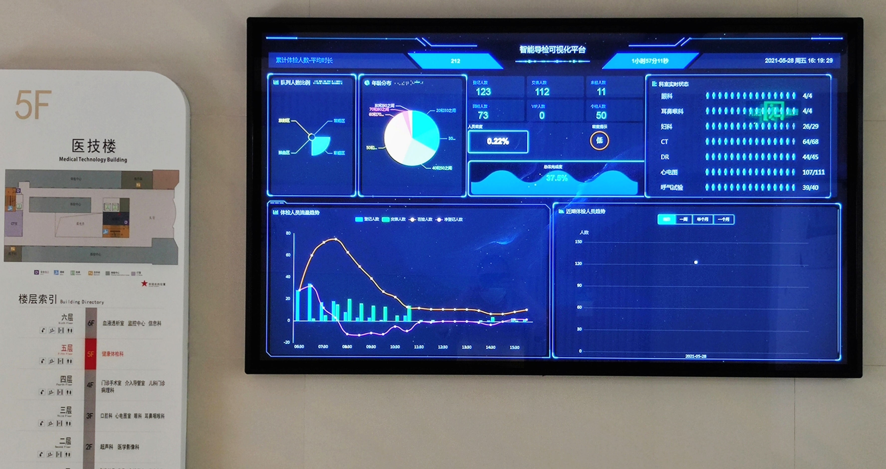 以体检客户需求为导向,切实为群众办好实事,2021年5月25日,广德市人民医院医院健康体检科“全流程智能导检系统”正式上线,是宣城市首家运用全智能导检系统引导体检的专业健康体检机构。