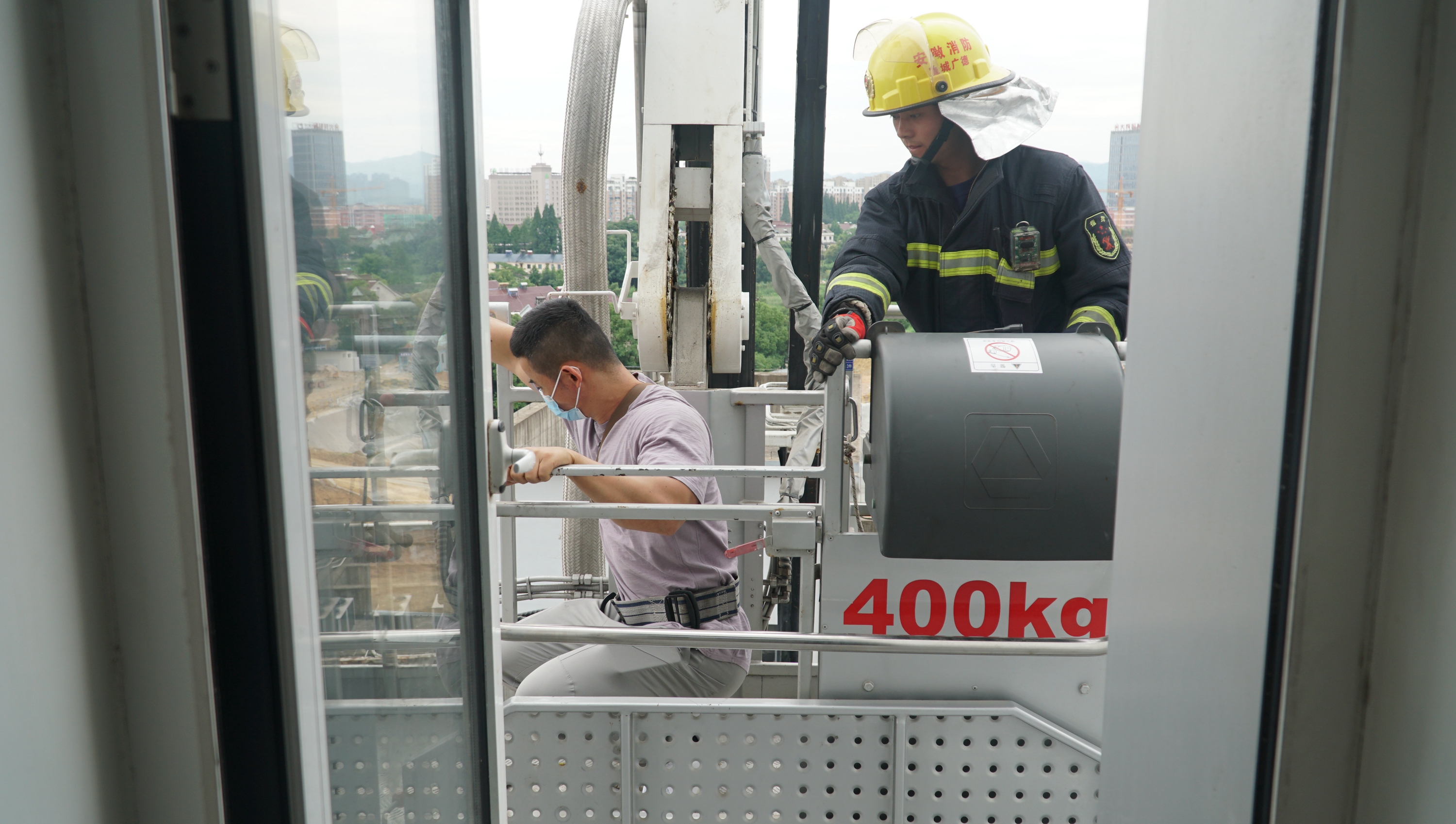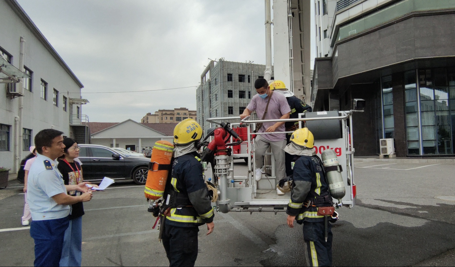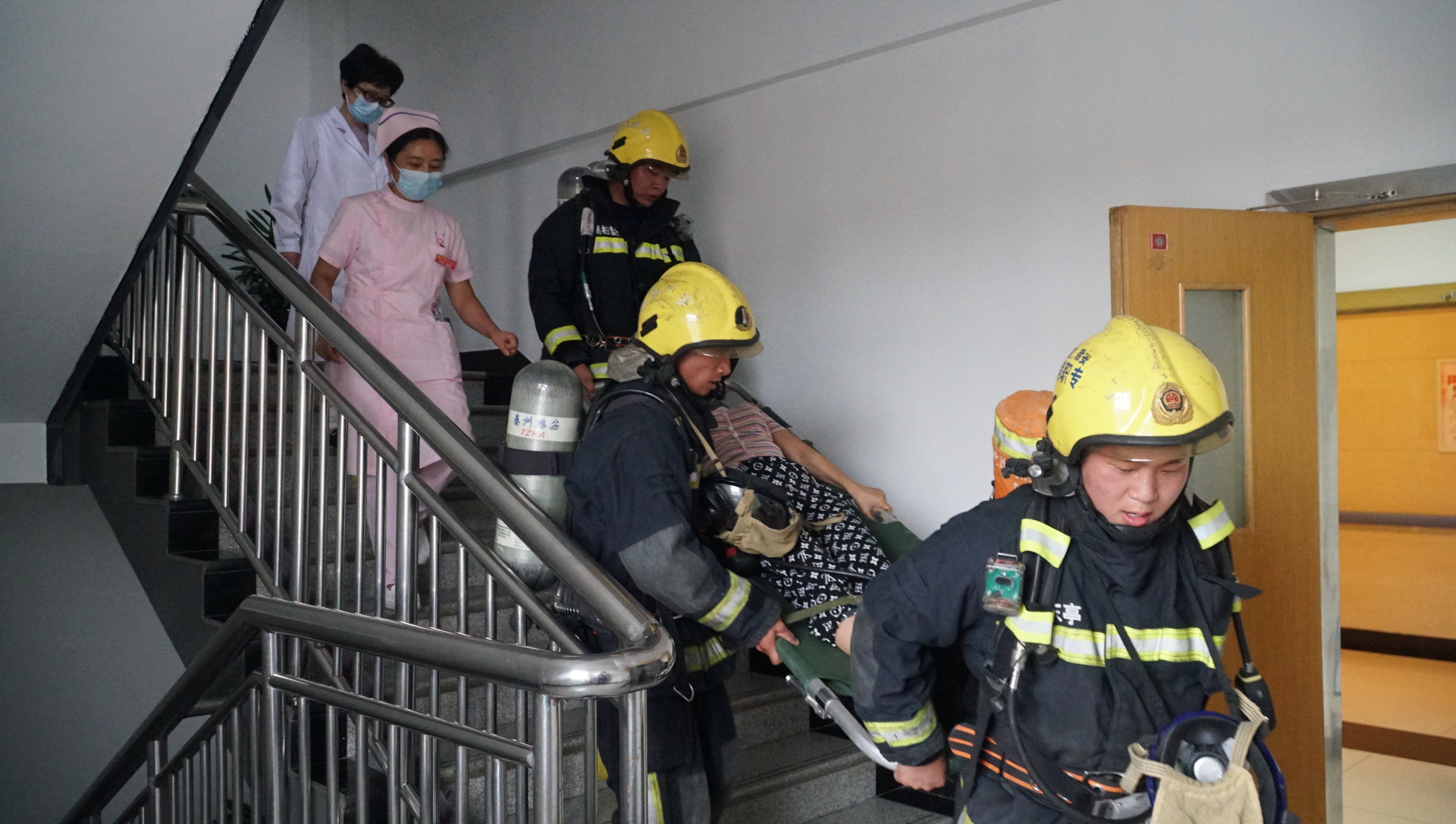 消防人员用担架救助危重病人1名,登高救助被困病人1名。消防演练按照预定的方案,有序、紧张地进行,整体疏散到位后,进行了人员的清点统计。