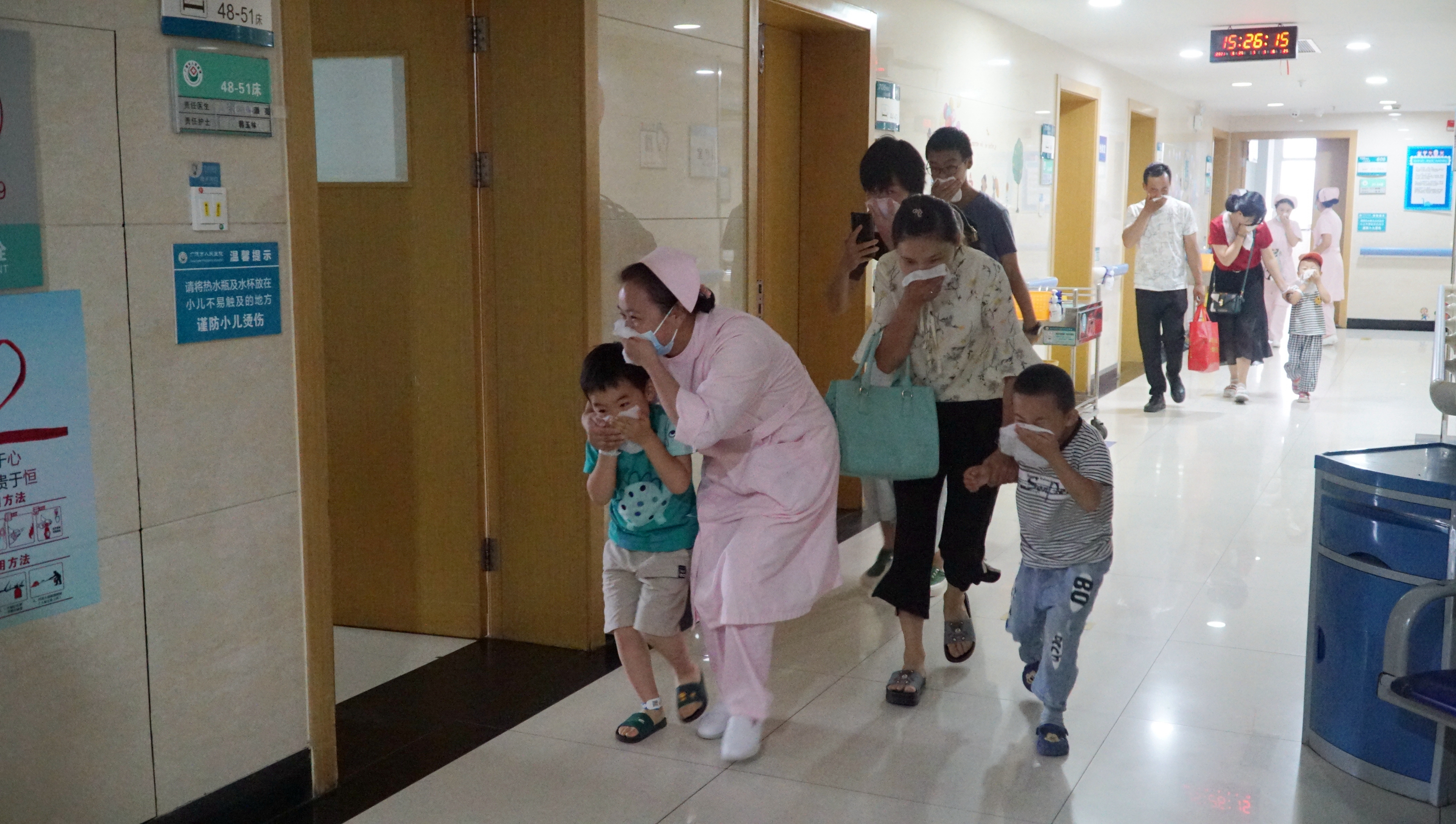 儿科护士长组织疏散组在最短的时间内在病房、楼梯间及安全出口处,引导疏散病患,由医护人员进行现场救助,从指定路线进行有秩序地疏散转移病人,把现场所有人员,快捷有序地疏散到安全地带。