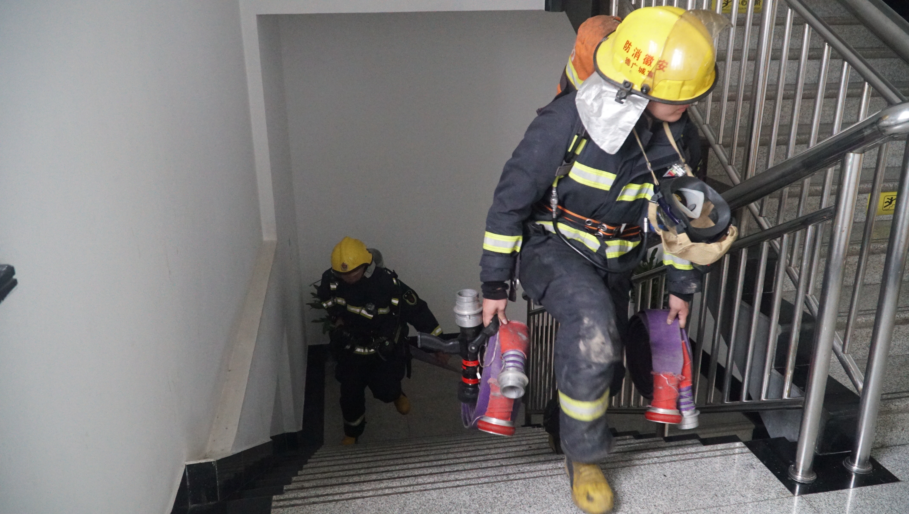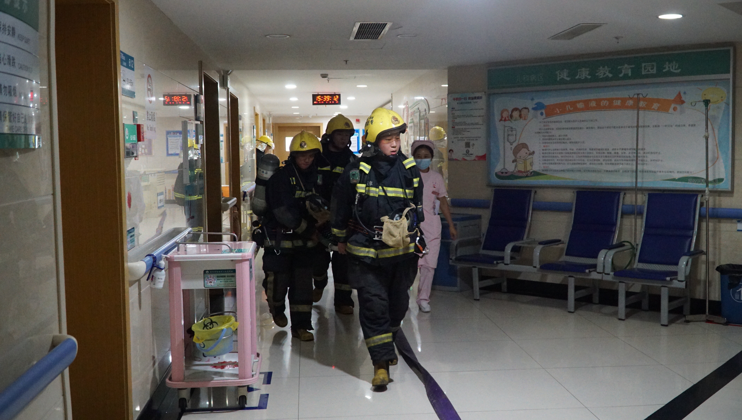 医院微型消防站接到消防控制室的通知后,微型消防站的专职消防员全副武装后立即赶往现场进行灭火。充分发挥医院微型消防站“一分钟响应,三分钟到位”的快速应急响应机制。