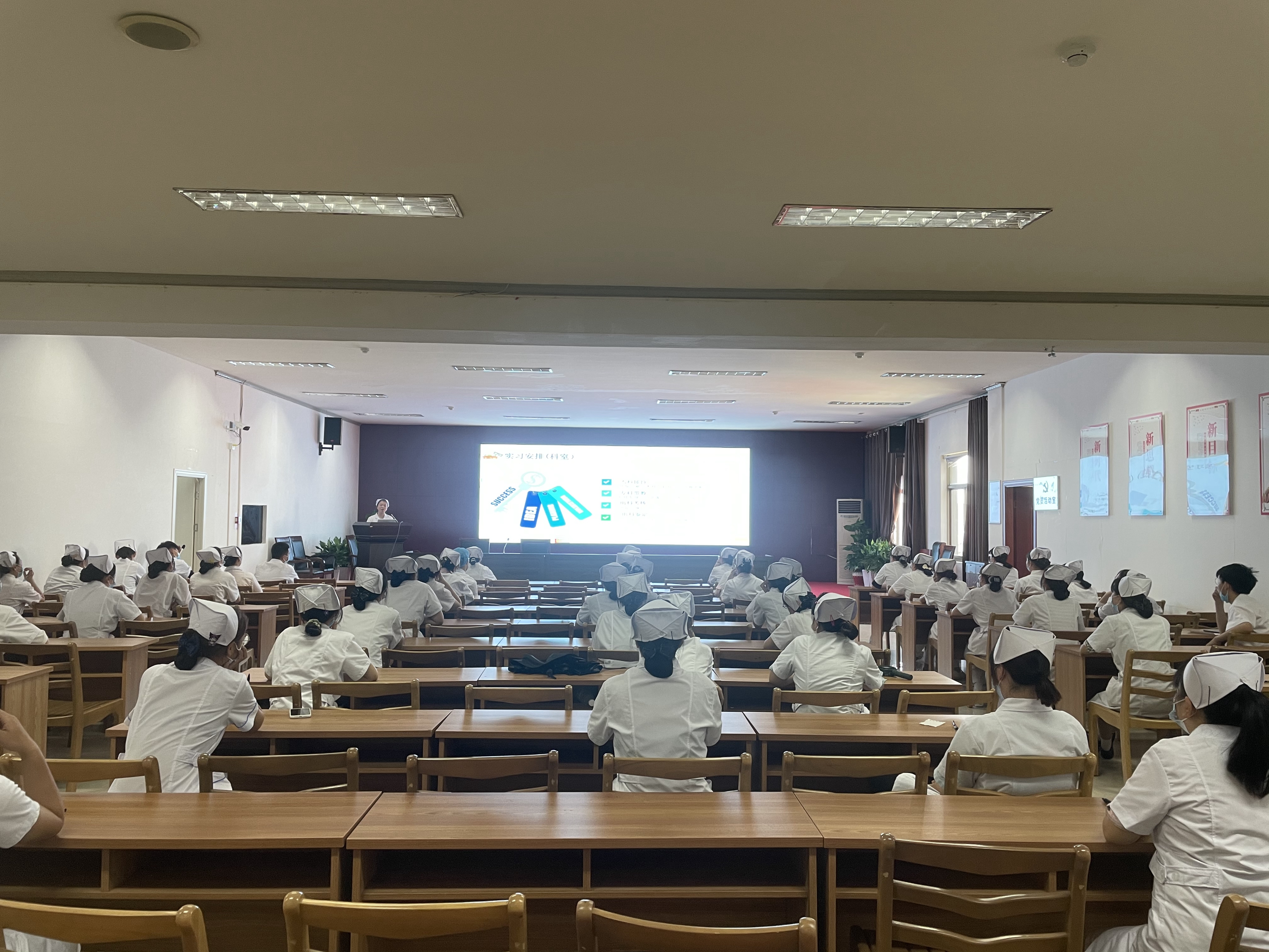 为了确保培训实效,护理部副主任蒋艳制定了严谨的培训计划,精心安排了各项理论及操作培训课程。培训开始前,蒋艳副主任首先向实习生讲解了此次培训的目的,详细介绍了医院总体情况和护理工作概况,对护理实习生的实习内容、实习要求、如何做好实习生等做了讲解。希望护理专业实习生能够有目标,有方向更好的完成为期十个月的临床护理实习任务,提升自身的综合素养,与医院共同进步。