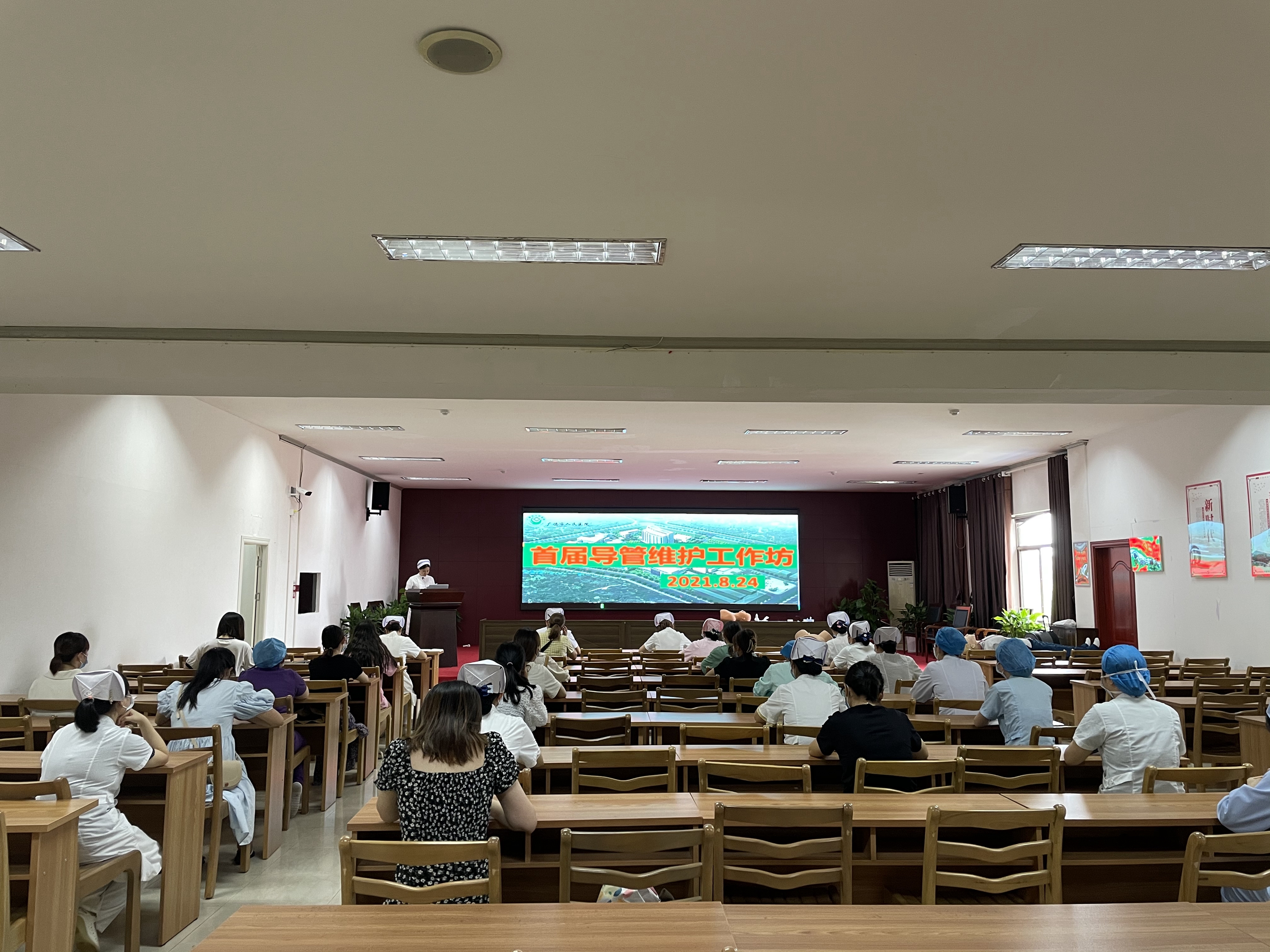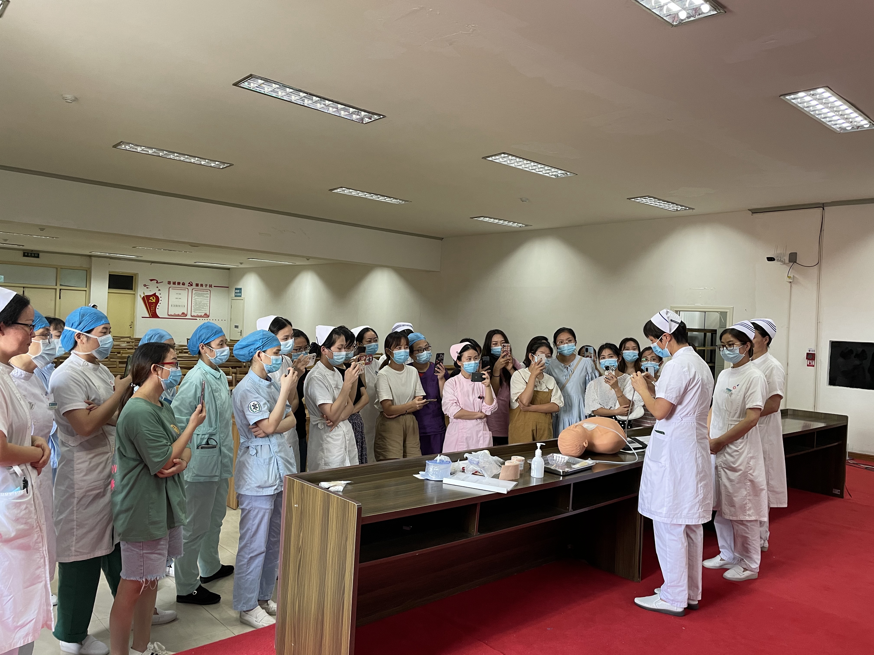 我院护理部组织导管组于2021年8月24日开展了导管维护工作坊活动。此次活动由导管组组长王荣护士长主持,护理部杨正霞主任、游玲玲主任、储德娣副主任参加了此次活动。各科室导管联络员及各科室护理安全员共37人参加培训。