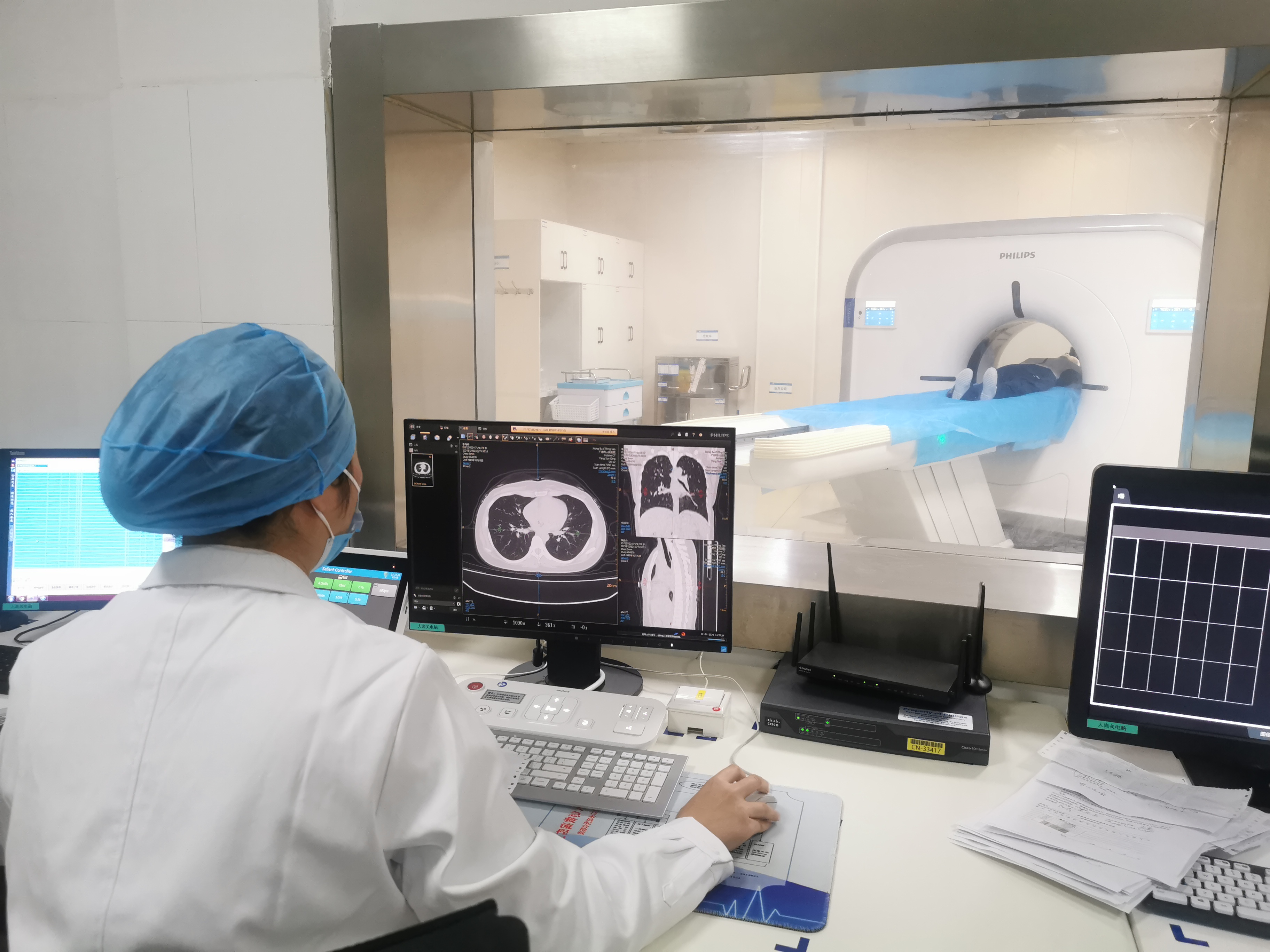 影像科当班医护人员紧急为昏迷患者吸氧、行心肺复苏,在医护人员的积极配合下,患者得到了及时救治,心跳和自主呼吸开始恢复,同时ICU和麻醉科医生赶到现场,并对患者进行了转运。