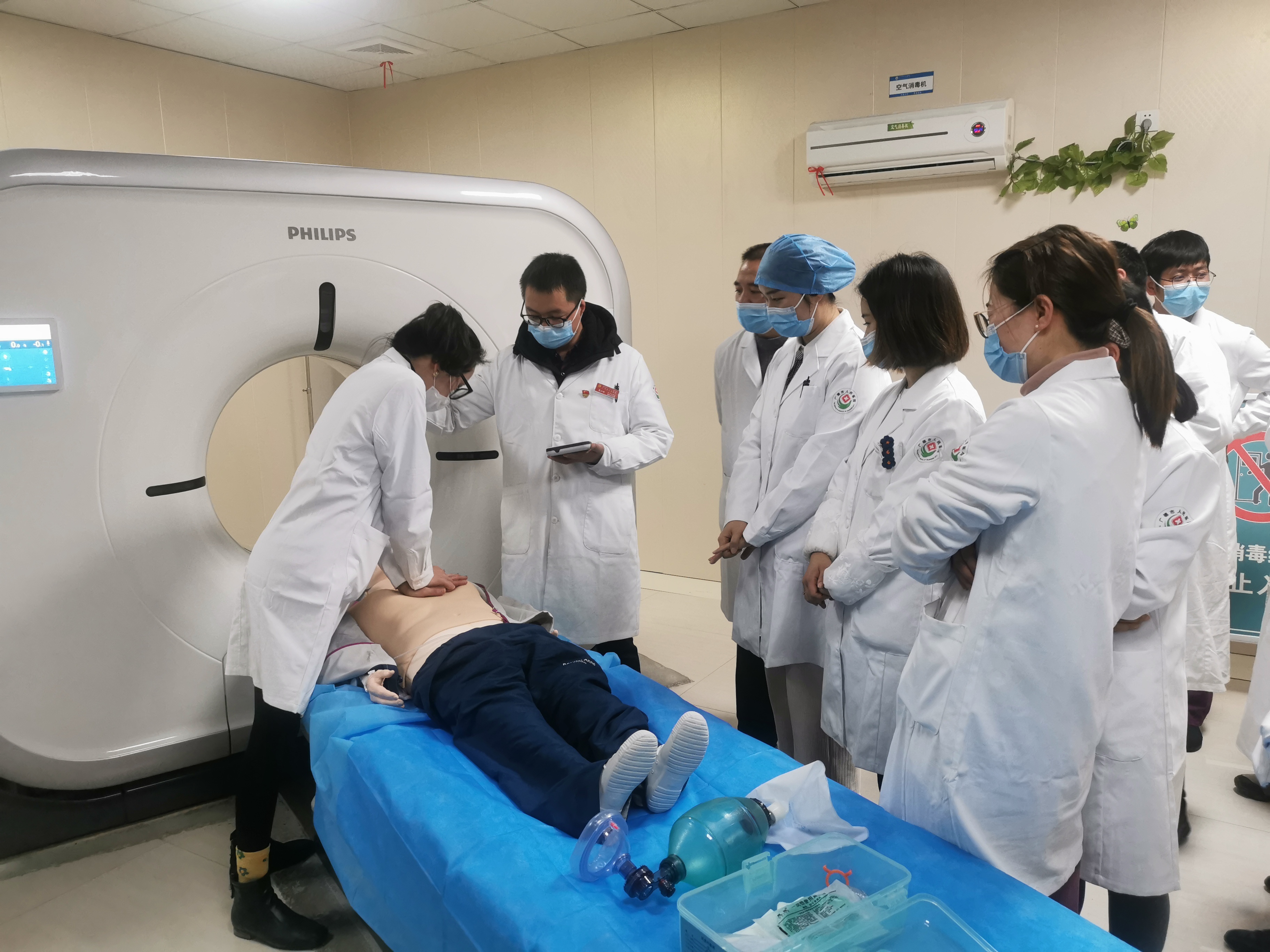 随后,根据演练安排,影像科每一位医护人员都进行了心肺复苏技能的演练操作。