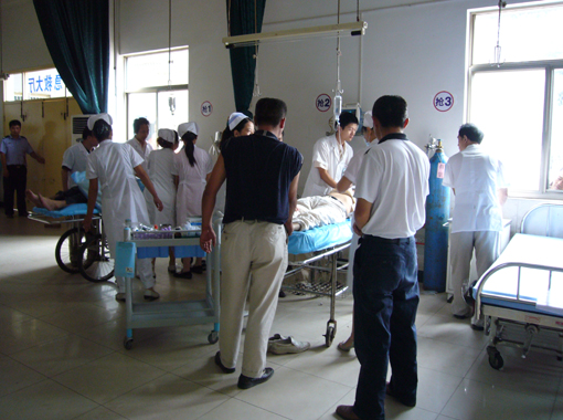 钟后,又一位脑溢血危重病人由中医院转诊至我院急诊
