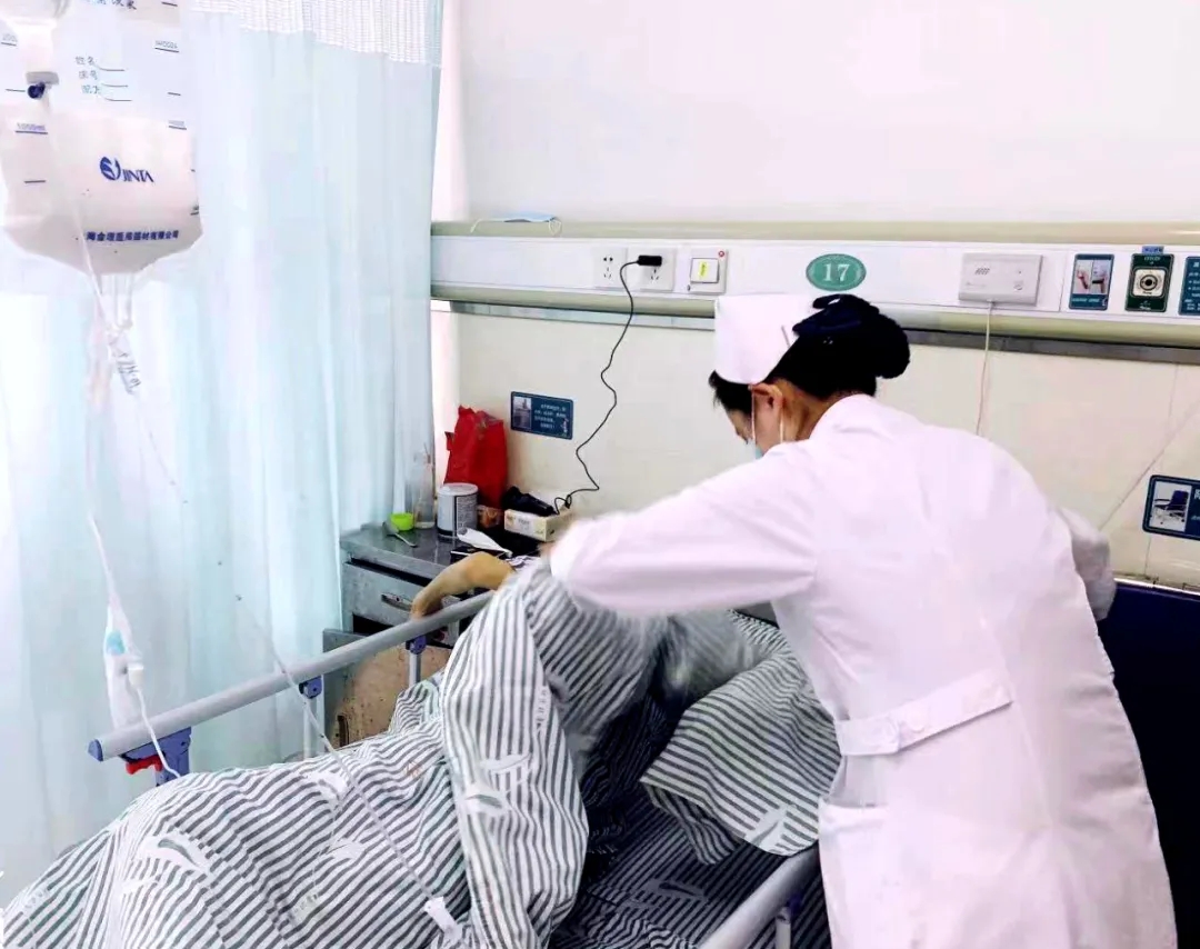 这位患者是我们科室的老病号了,两个月前在芜湖弋矶山医院做了手术,好转后转回我们科继续治疗,一个月后出院回家。8月13日夜间,老爷子半夜肚子疼,又被焦急的家属送来医院。看到这位老病号,我们护士是有点着急的,因为之前住院时间久,营养状况差,他的血管状况非常差。每次输液前,老爷子都会安慰着我们:“孩子啊,没事儿,我血管不好打,一针打不进就再打一针。”宽慰的话语更坚定了我们的信心,大家每次都睁大眼睛,聚精会神,每次都是一针搞定!老爷子平时很少话,但只要看见我们医护人员,不管自己当时有多难受,总会露出慈祥的笑容。