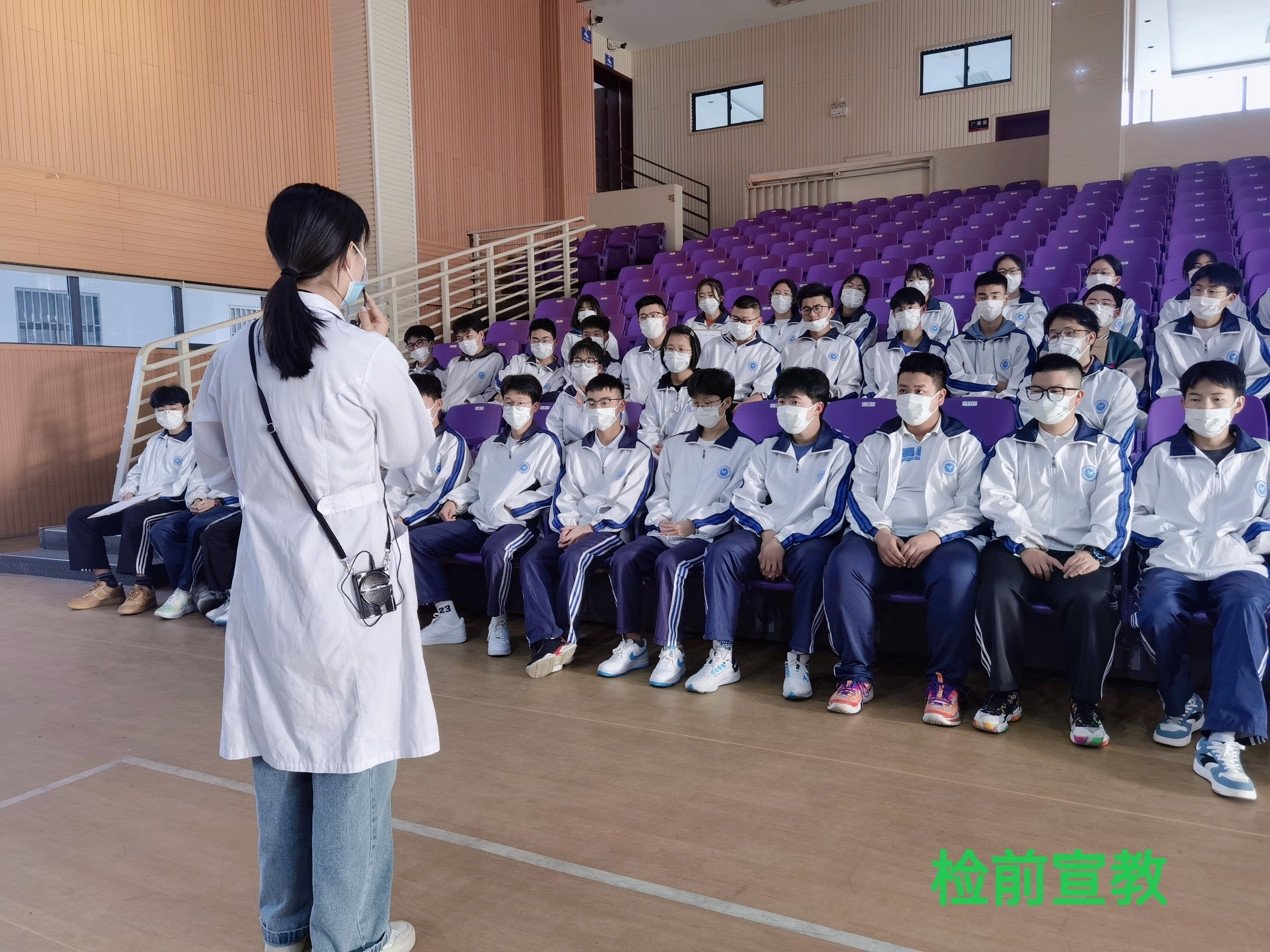 为确保体检各项工作顺利进行,一辆满载着医务人员的体检专用车和DR车清晨7点就进入校园。首先由体检中心导检护士为同学们开展检前宣教,指导他们有序参加体检。