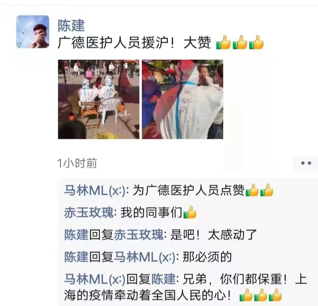 上午10点,身在上海的广德人陈先生发布了一条朋友圈,感谢家乡医务工作者们援沪!