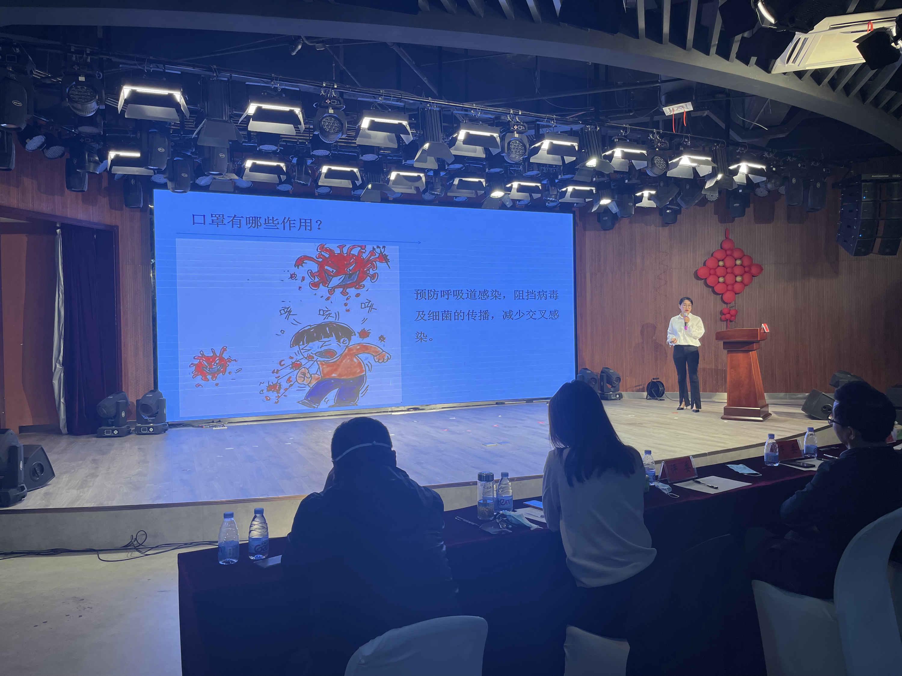 我院神经内科医师丁超第一个出场。他演讲的主题是《抑郁症--心灵的感冒》。他从抑郁症的存在、危害、识别和预防等方面,向大家科普了如何正确面对抑郁症,即:不害怕不逃避,把抑郁症作为心灵的感冒来对待。每周四是丁超医师的心理专科门诊,有许多患者提前预约,丁医生演讲完毕,提前离场,回医院接诊。