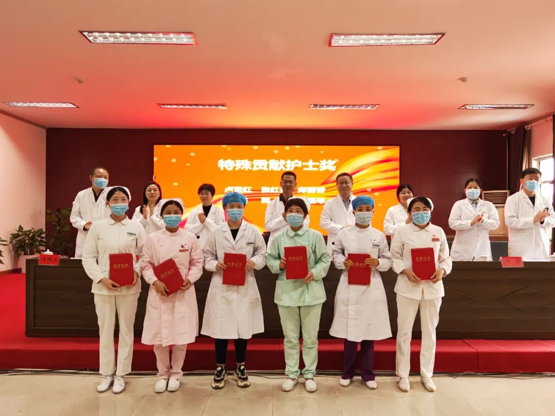 5月12日上午,在我市召开的“5.12”国际护士节表彰大会上,我院发热门诊护理专班获得广德市“优秀护理团队”荣誉称号;王倩、焦俊、胡梦梦、鲁思思、李静、陈小欢六人荣获广德市“优秀护士”称号;卢贤红、张红云、郑丽香三人荣获广德市“突出贡献护士”称号;李梦杰、沈萍萍、程瑜洁、王家慧、曾令琴、张茗明、胡燕、胡正媛、陆和兰、陈欢十人荣获广德市“最美抗疫护士”称号。