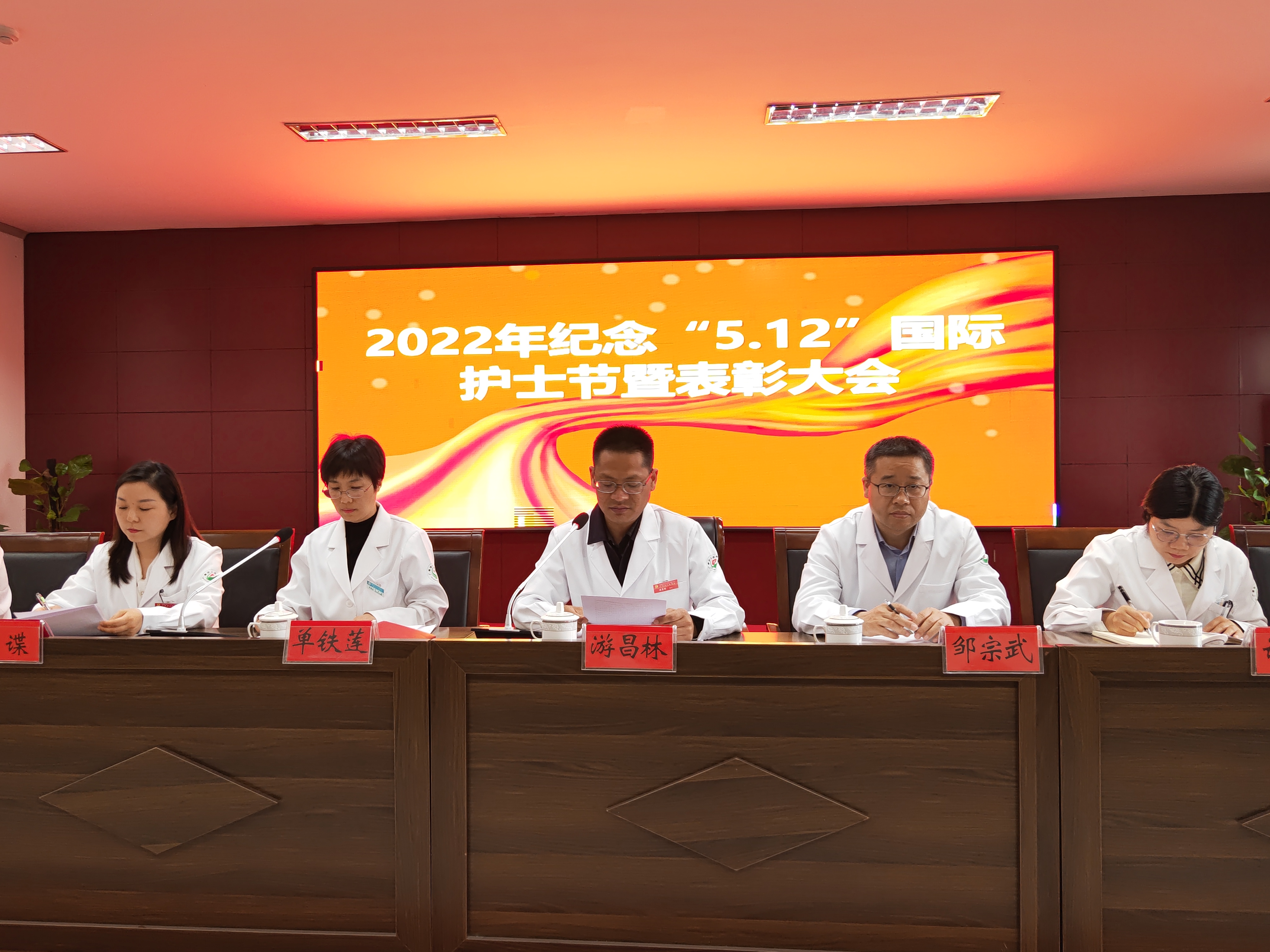 邹宗武副院长宣读了关于我院2022年纪念“5.12”国际护士节大会上的表彰决定,对我院2021年护理工作中涌现出的先进个人、先进集体、三十年护龄护士及比赛获奖者等进行表彰。