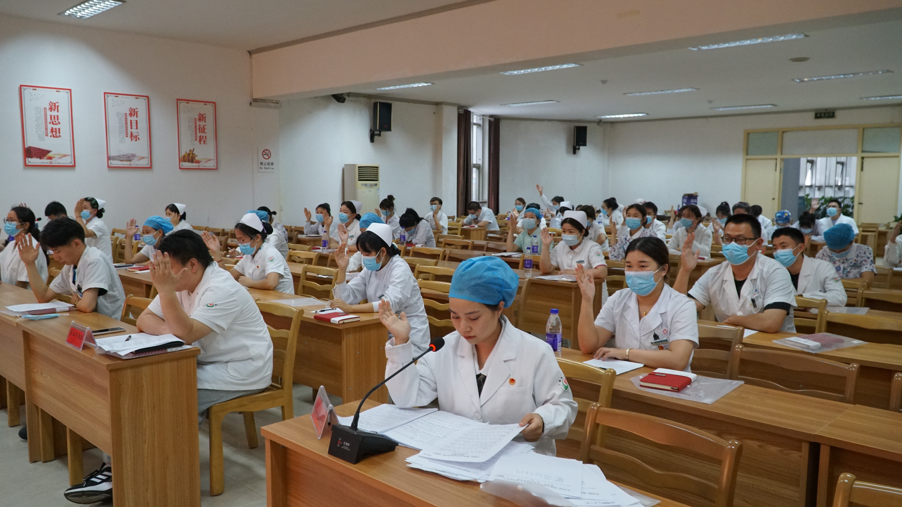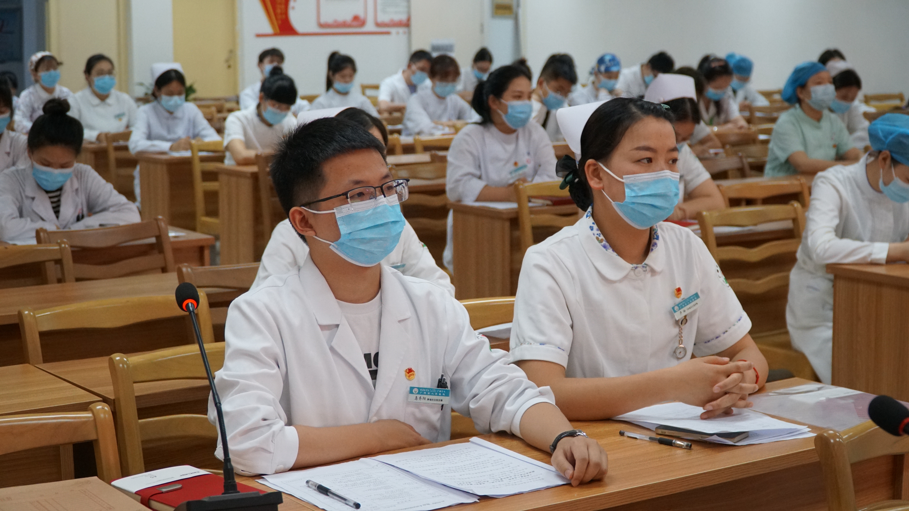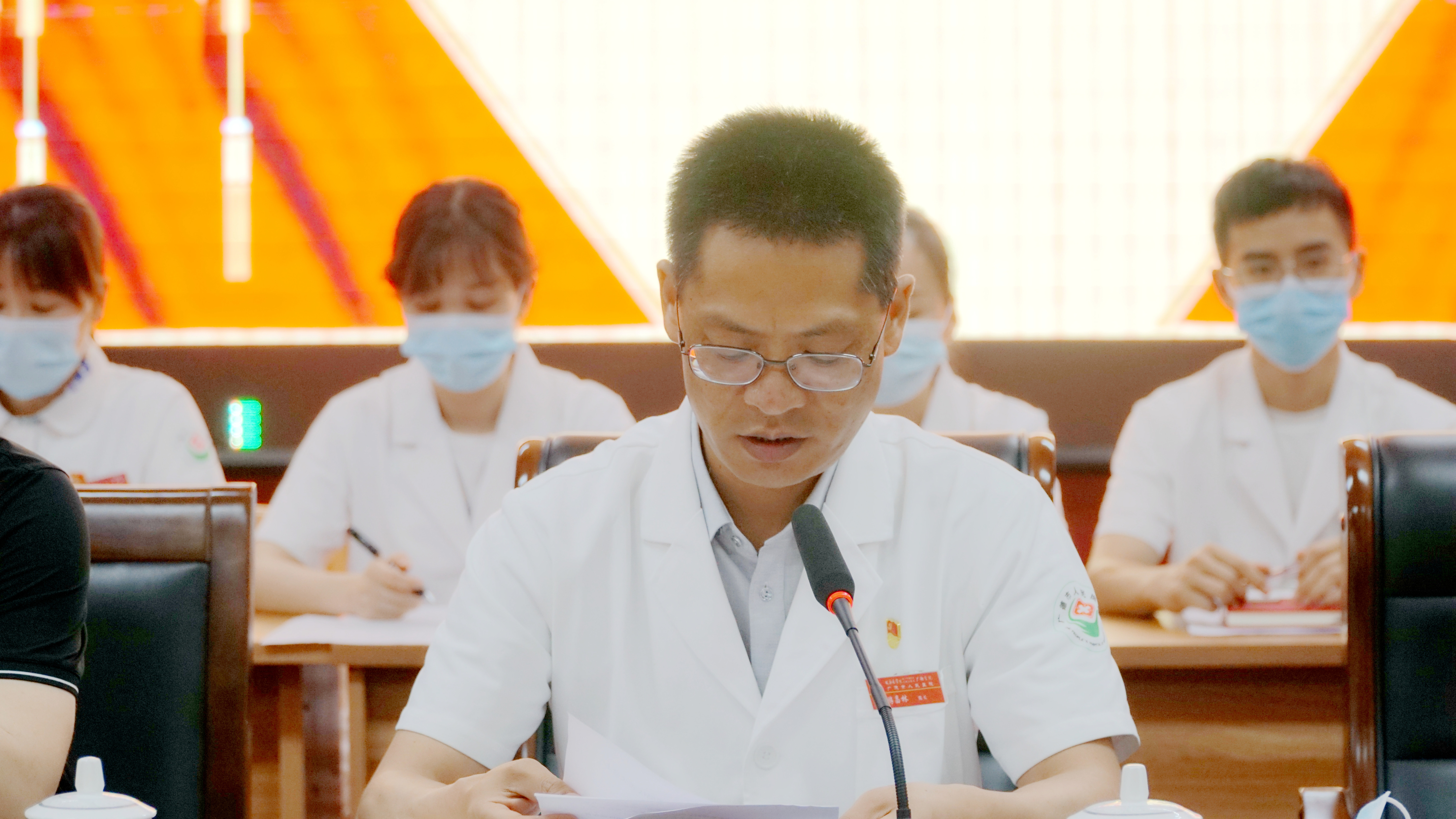 院党委书记游昌林代表院党委讲话。游昌林强调,在抗击新冠肺炎疫情期间,广大团员和青年职工舍小家顾大家,奋战在疫情防控、文明创建和医疗服务一线,充分体现了“召之即来、来之能战、战之必胜”的精神。游昌林书记对全体青年团员提出三点希望:一是加强思想政治引领,始终把共青团的政治性摆在首位。二是坚持党管青年原则,始终把青年成才作为根本任务。三是追求卓越发展目标,始终把实践作为建功立业重点。