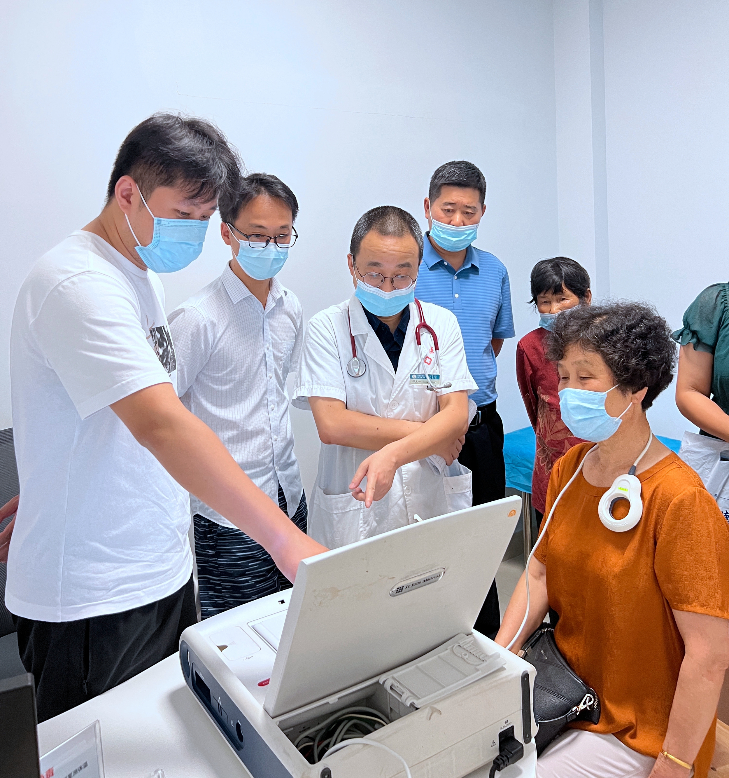 当日下午,我们收到一条来自起搏器术后联络群家属的请求,“你好,我家老奶奶行动很艰难,上下车都很不方便,今天需要程控,我们不方便去医院,希望得到你们的帮助”。在了解到患者的情况后,心内科主任邱五一、护士长方敏等一行人便即刻顶着炎炎夏日前往冯奶奶所在的健桥医院,上门进行起搏器程控检查。