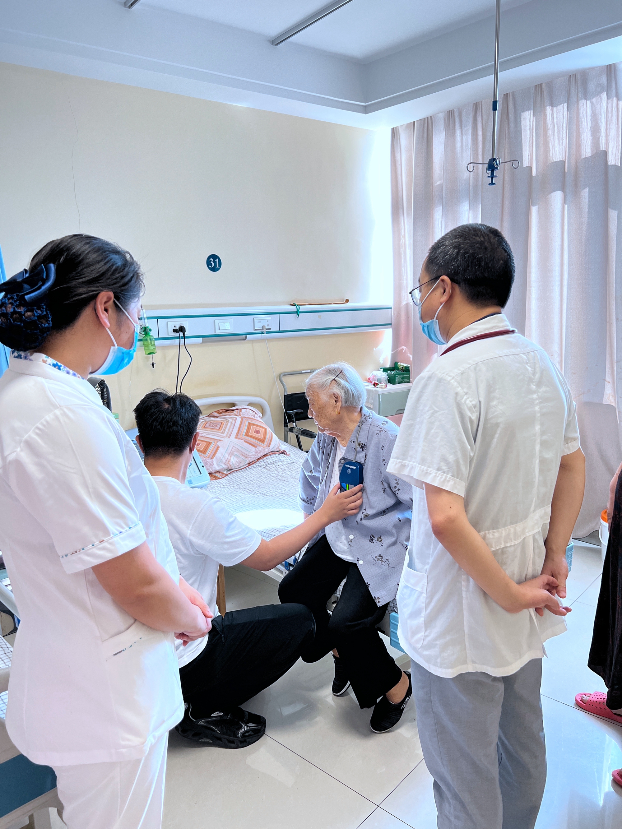 听到医护人员的专业诊断分析和护理讲解后,患者和家属消除了心中的担忧,并动情地回忆起冯奶奶当年在心内科植入心脏起搏器的情景,表示数年前是我们心血管内科给了冯奶奶第二次生命,现在又上门为她检查,真是践行了医者仁心为民的高尚品德。