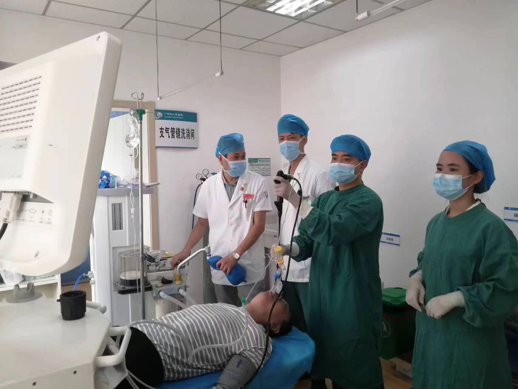 整个过程中有严密心电监护技术和抢救措施保障,术中患者生命体征平稳,医师们操作动作敏捷、手法娴熟,插入气管镜,镜下观察、局部灌洗、刷检、收集灌洗液送检,整个过程中患者无不舒适感,检查过程十分顺利。术后患者很快苏醒,自诉无不良记忆,无恐惧感,全程无痛觉。