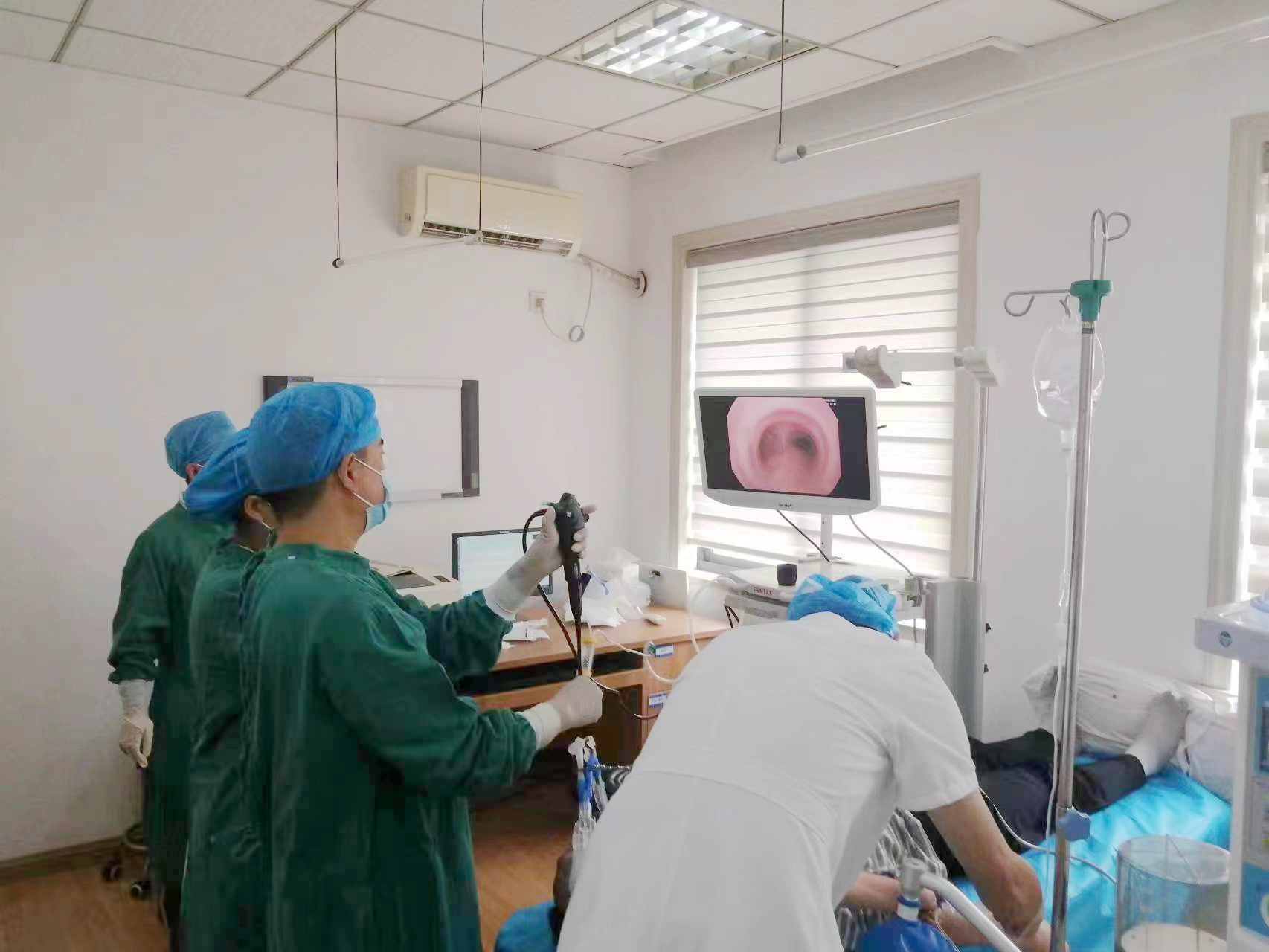 经过周密的术前准备,呼吸与危重症医学科赵兴良主任与麻醉科张德文主任现场坐镇指导,操作医师与麻醉医师紧密配合,不到30分钟就顺利完成了全麻下支气管镜检查术全部操作。